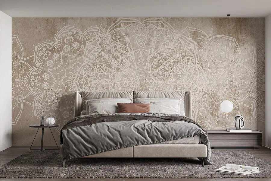Verander elke kamer in een gezellig toevluchtsoord met deze prachtige muurschildering met een wit sierlijk ontwerp op een warme bruine achtergrond. Stel je voor dat je ontspant met een kopje koffie terwijl je naar ingewikkelde patronen staart die bijna voelen alsof ze geheimen van comfort en creativiteit fluisteren. Het is alsof je een kunstwerk uitnodigt om in je huis te komen wonen. Deze muurschildering is perfect voor een woonkamer of een grillige slaapkamer en brengt een vleugje elegantie en warmte. En misschien zullen anderen wel vragen: “Waar heb je dat vandaan?” – en jij kunt welbewust glimlachen. Het is niet alleen decor; het is een gespreksstarter!