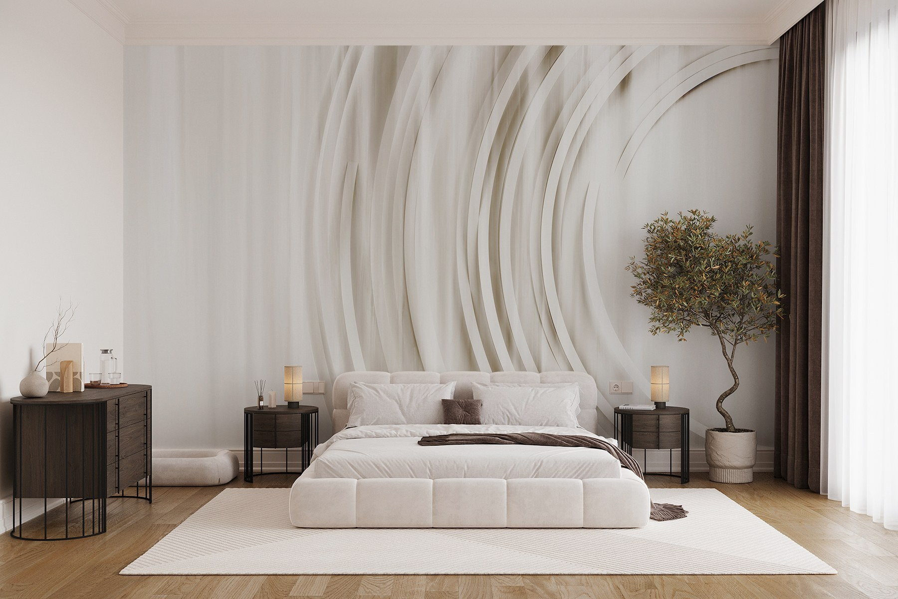Transformeer elke kamer met deze prachtige muurschildering met een zachte witte en grijze achtergrond die danst met elegante cirkels. Het is het perfecte stuk om een rustige sfeer te creëren – stel je voor dat je je leefruimte binnenstapt en een golf van rust over je heen voelt komen. De eenvoud van het ontwerp maakt het veelzijdig en past moeiteloos bij verschillende stijlen. Gasten zouden wel eens midden in een gesprek kunnen stoppen, gefascineerd door de zachte rondingen. Het is een subtiel statement dat verfijning en rust uitstraalt, waardoor elke blik als een frisse wind aanvoelt. Of je nu een etentje geeft of geniet van een rustige avond, deze muurschildering verbetert de sfeer in stilte en verandert de muren in een canvas van moderne kunst. Wie wist dat decor zo uitnodigend kon zijn?