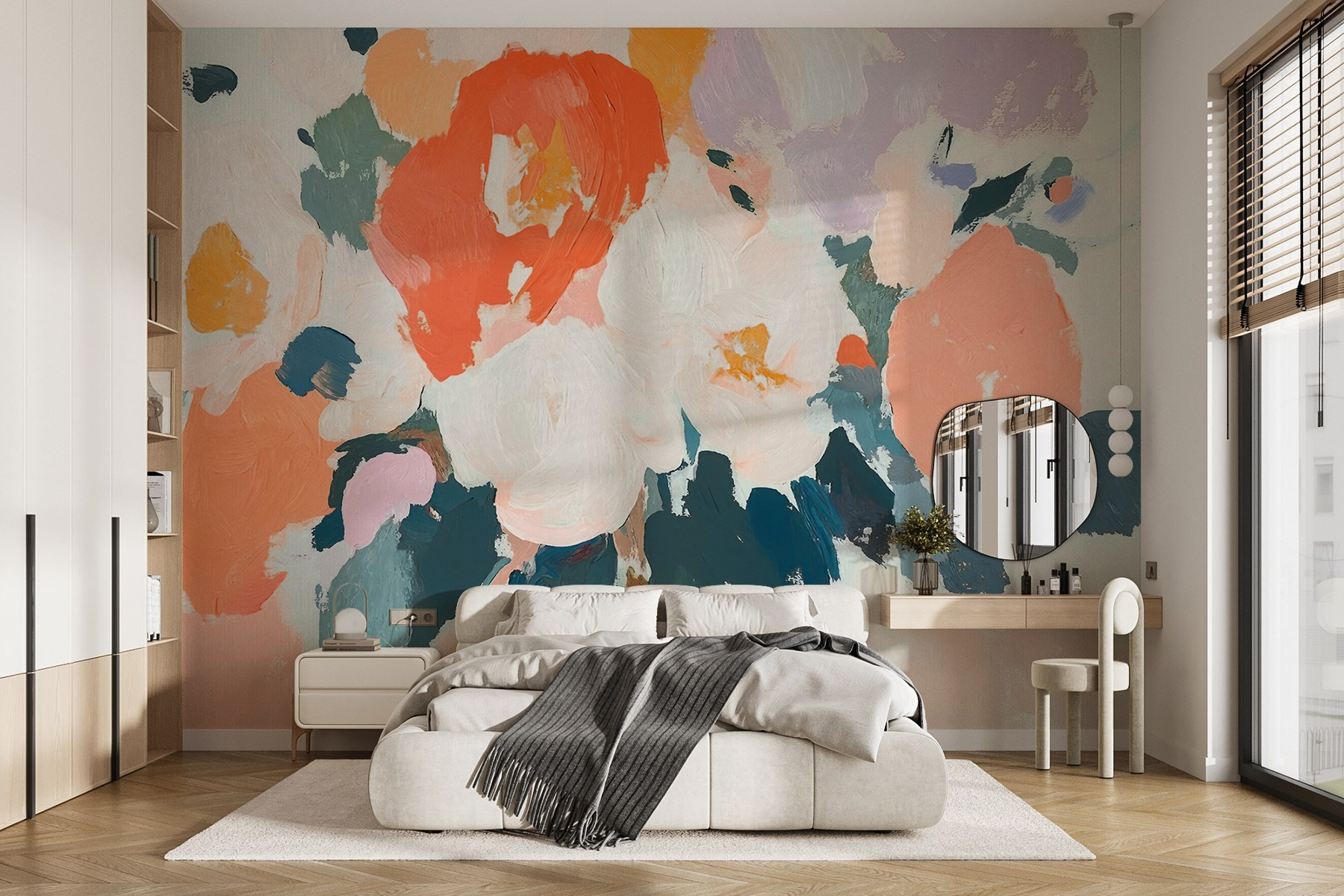 Verander een muur in een bloeiend paradijs met deze levendige muurschildering van bloemen in alle kleuren. Het is alsof je een tuin binnenshuis haalt – zonder gieter of vervelende insecten. Stel je voor dat je koffie drinkt in een zonovergoten hoekje, omringd door bloemen die nooit vervagen. Elke penseelstreek straalt persoonlijkheid uit en nodigt in elke kamer een vrolijke sfeer uit. Of het nu de woonkamer is of een gezellig leeshoekje, deze muurschildering fluistert ontspanning en vreugde. Je muur wordt misschien wel de favoriete plek in huis – wie heeft er een botanische tuin nodig als je dit hebt? Perfect om een beetje leven en een vleugje kleur aan je ruimte toe te voegen.