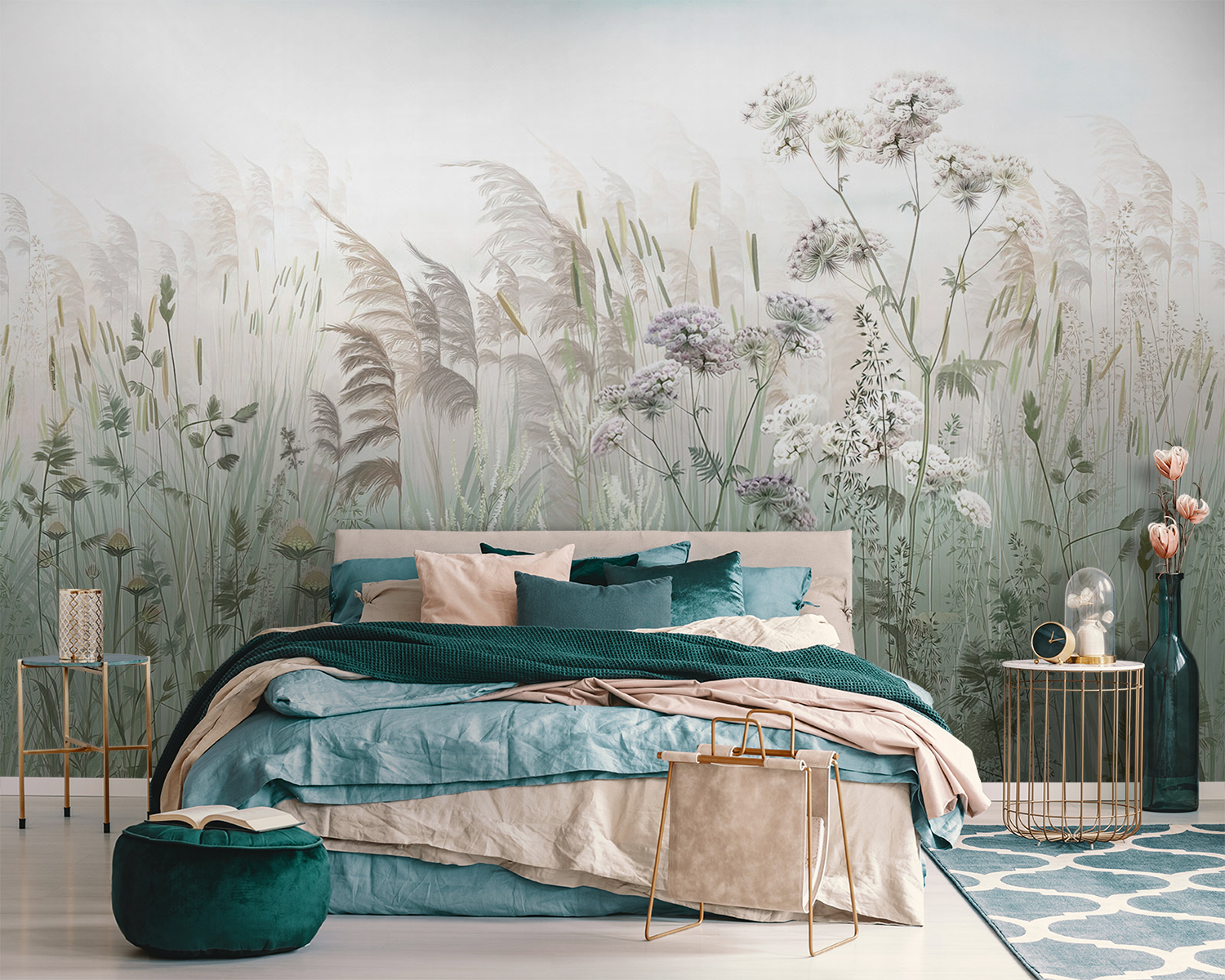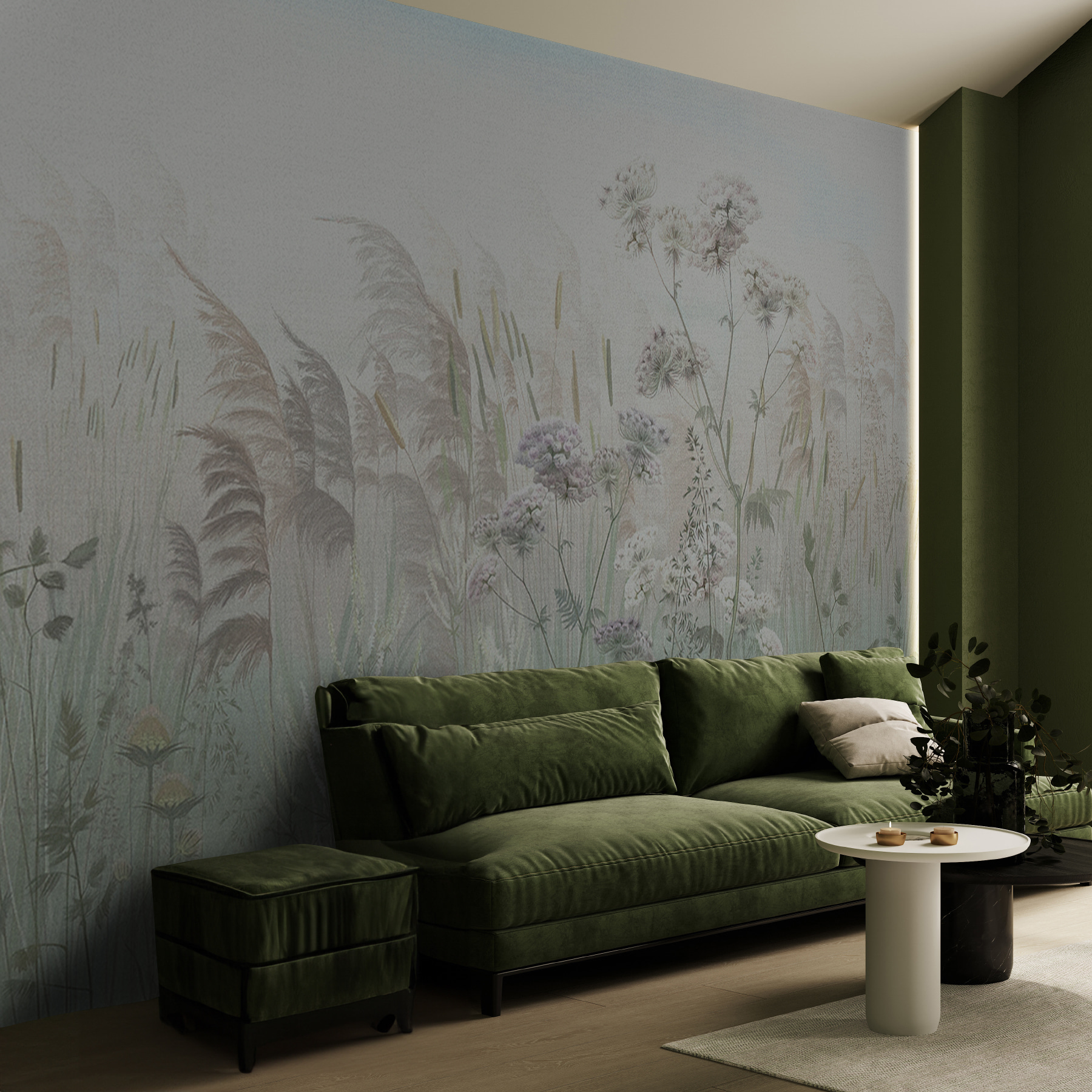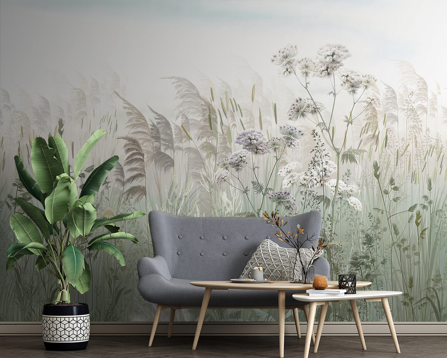 Tover je ruimte om in een betoverende ontsnapping met de muurschildering “Serene weide in zachte ochtendnevel”. Stel je voor dat je wakker wordt met een vredig tafereel van zachte grassen en fluisterende bladeren, alsof een fijne mist de weide net goedemorgen heeft gekust. Elke bloem lijkt zachtjes te wiegen en nodigt een gevoel van rust uit in elke kamer. Deze muurschildering is niet zomaar een muurbekleding, het is als een frisse wind die je alledaagse drukte verandert in een rustig toevluchtsoord. Vrienden komen misschien even langs en zeggen: “Hé, ben je naar het platteland verhuisd?”. Perfect voor een ontspannende sfeer of zelfs een gezellig leeshoekje. Laat deze muurschildering je meevoeren!