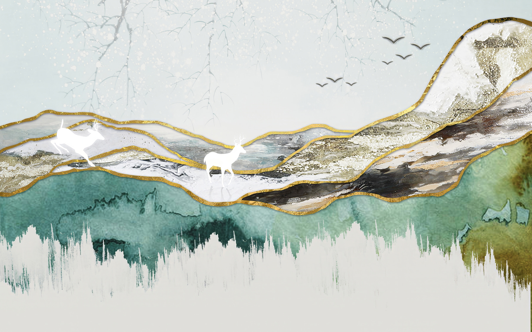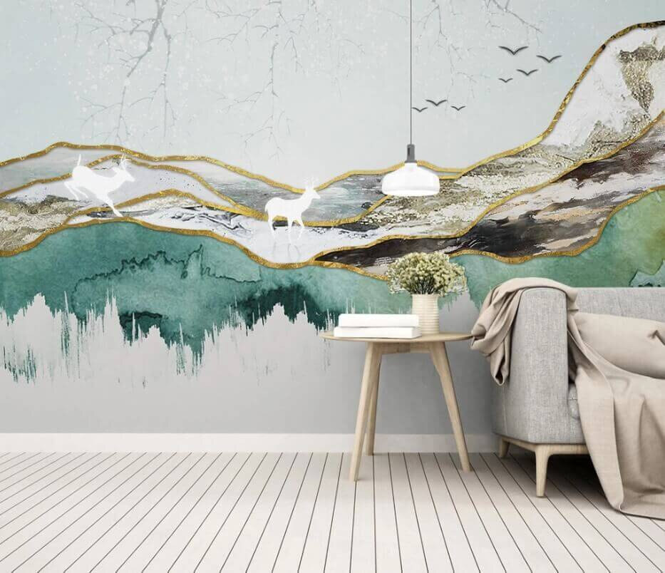 Stel je voor dat je een gezellige kamer binnenstapt die versierd is met deze prachtige muurschildering van een hert en majestueuze bergen. Het is alsof je een stukje natuur in huis haalt. De serene kleuren en zachte rondingen van het landschap stralen rust uit, waardoor het perfect is voor een leeshoekje of elke andere plek waar rust wordt gekoesterd. Stel je voor dat je vrienden ontvangt en hun ogen oplichten als ze dat artistieke hert zien, alsof het de kamer binnen gluurt. Deze muurschildering is niet alleen decoratie, het is een kleine ontsnapping naar de vrije natuur, zonder de insecten. Of het nu gaat om een vleugje natuur of een vleugje fantasie, deze muurschildering heeft het allemaal.