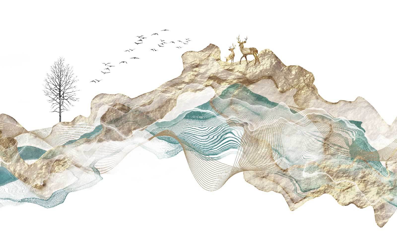 Verander elke ruimte in een sereen toevluchtsoord met deze prachtige muurschildering van bergen en vliegende vogels. Stel je voor dat je ervoor staat en een zacht briesje voelt alsof je echt buiten bent. De mix van aardse kleuren en vloeiende lijnen roept een gevoel van rust op, waardoor het perfect is voor elke kamer die een vleugje natuur nodig heeft. Stel je voor dat je ‘s ochtends aan je koffie nipt terwijl je naar deze schoonheid staart – het is net een mini-vakantie elke dag. En wie wil er nou niet een beetje drama op zijn muur? Zeg maar dag tegen saaie achtergronden en hallo tegen een conversatiestarter die je het gevoel geeft dat je op de top van de wereld staat!