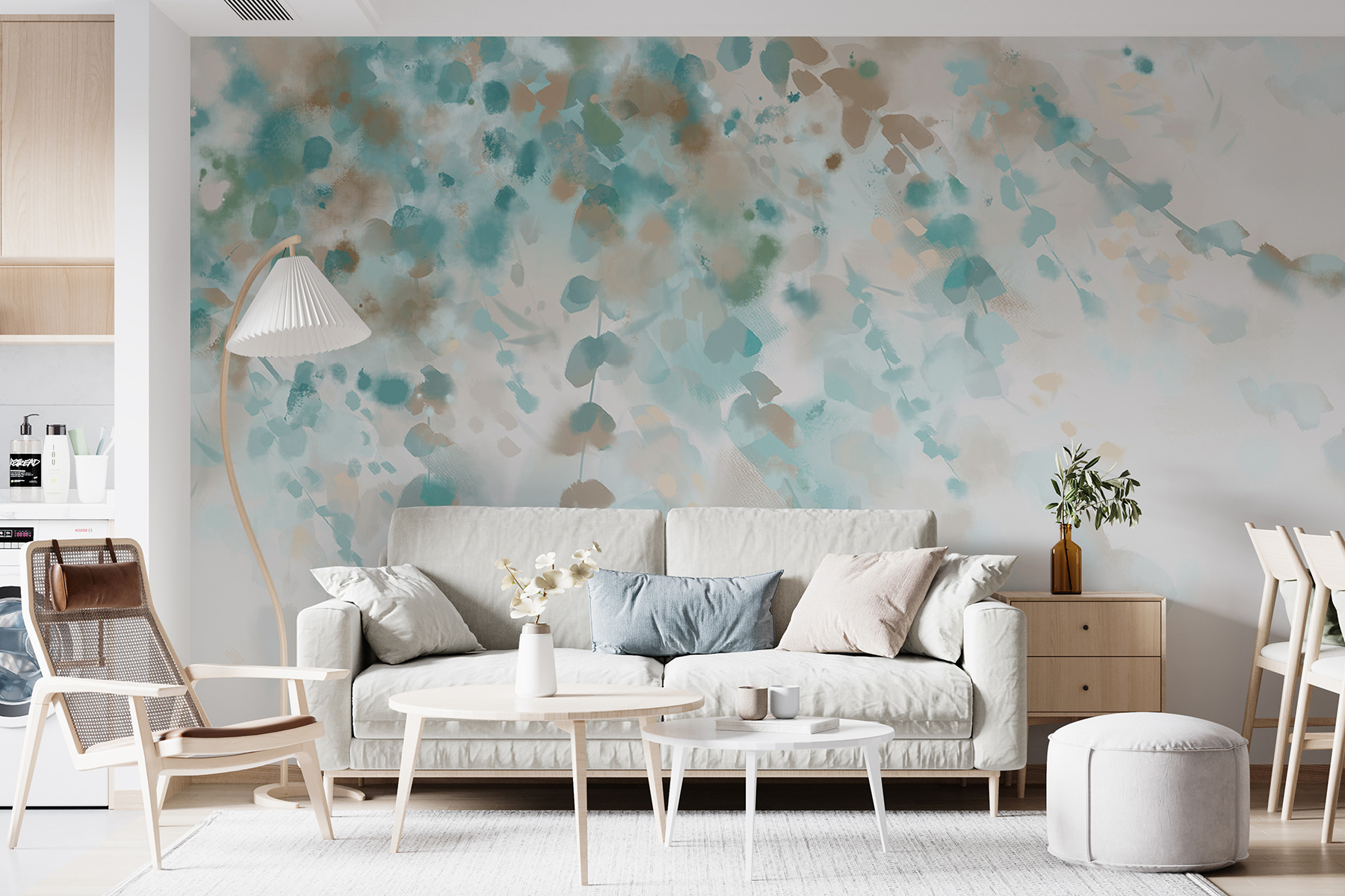 Heb je wel eens het gevoel dat je ruimte een frisse wind kan gebruiken? Dan is deze prachtige muurschildering “Blue Spot on a White Surface” misschien de oplossing. Het is alsof iemand de rust van een zachte lentemorgen heeft opgevangen en over je muur heeft gespat. Zachte blauwtinten en gedempte aardetinten dansen samen in een patroon dat even rustgevend als fascinerend is. Stel je voor: een luie zondag, een kopje koffie – je ogen dwalen af naar die serene kleurspatten… en meteen voelt het leven een beetje lichter.