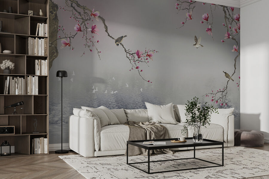 Stel je voor dat je met een kopje thee naar de “Fotobehang Birds and Blossoms Over Peaceful Water” zit te staren. Deze muurschildering is niet zomaar een kunstwerk, het is een ervaring. Met rondfladderende vogels en bloesems in volle bloei boven sereen water is het alsof je een dromerige Japanse tuin in je woonkamer hebt. Je kunt het getjilp bijna horen en de rust voelen. Van de levendige bloemen tot de mistige achtergrond, het is een visuele vakantie. Perfect om vreugde en rust op te wekken, het is een gespreksstarter – stel je de verhalen voor die je muur zou kunnen vertellen! Een gemakkelijke manier om elke ruimte om te toveren in een zen-retraite. 🌸🕊️