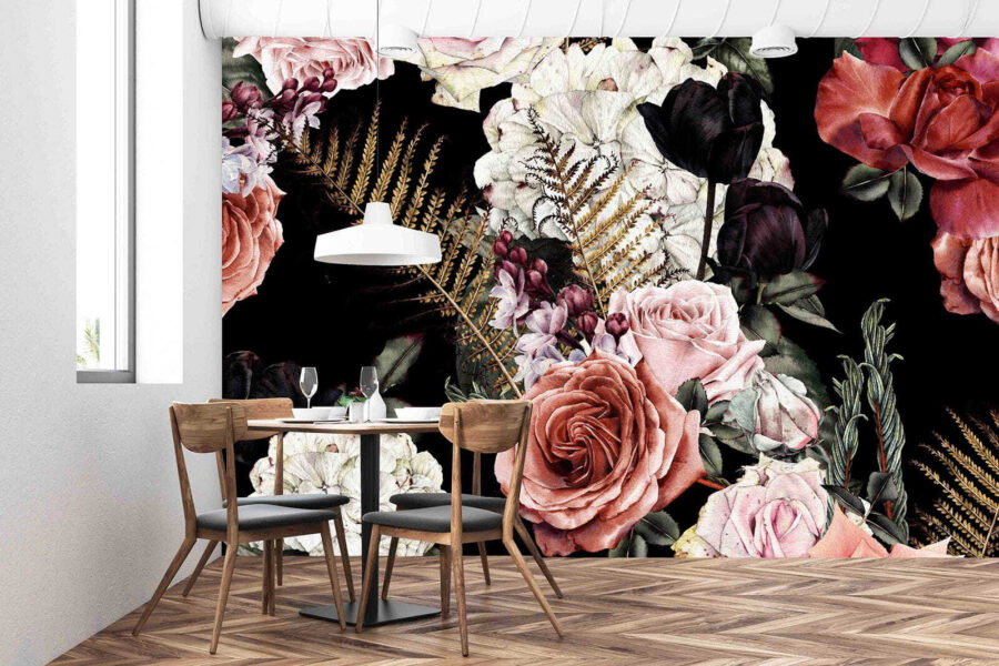 Verander elke muur in een bloeiend heiligdom met deze prachtige bloemenmuurschildering. Stel je levendige rozen voor in delicate tinten tegen een diepe achtergrond – als confetti uit de natuur voor je huis. Het is verbazingwekkend hoe één muur een kamer tot leven kan brengen, toch? Stel je voor dat je ‘s ochtends aan je koffie nipt en je geïnspireerd voelt door deze prachtige bloemen. Vrienden zullen misschien wel een dubbele blik werpen, omdat ze ervan overtuigd zijn dat jij je ruimte in een gezellige tuin hebt veranderd! Het is de perfecte manier om een vleugje natuur in huis te halen, zonder de gieter. Dus waarom zou je zelfs de saaiste dag niet opfleuren met deze bloemen?