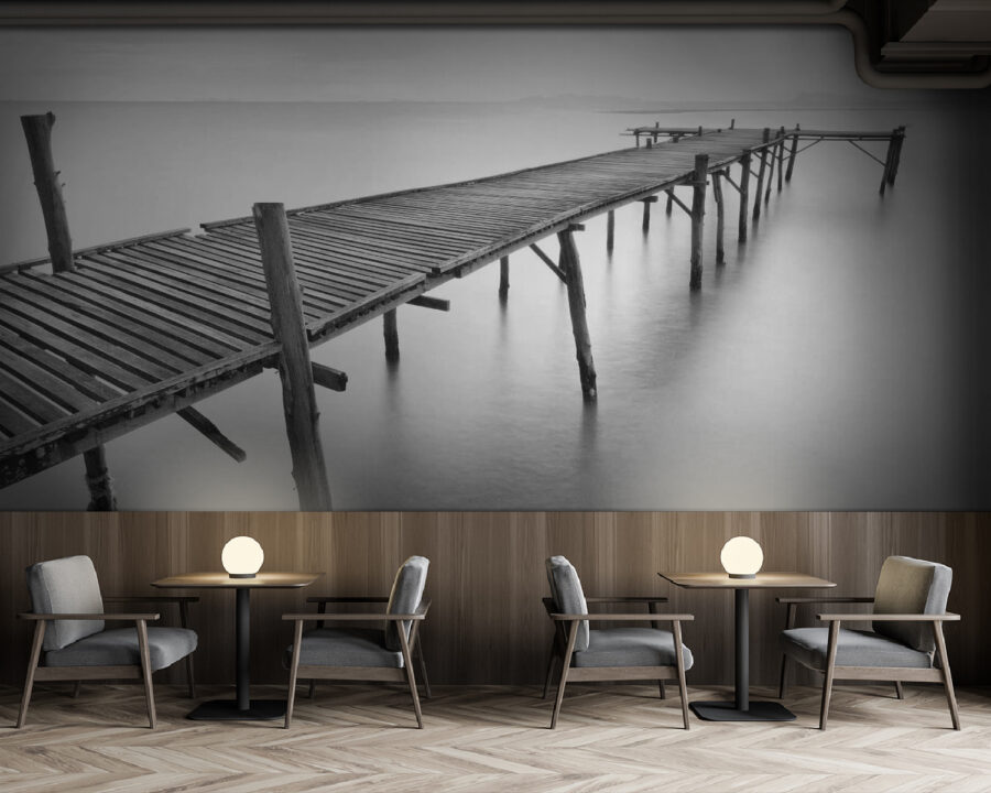 Transformeer je ruimte met een muurschildering die de vredige charme weergeeft van een lange houten brug die zich uitstrekt over kalm water. Stel je voor dat je aan de rand staat, diep ademhaalt en de rust over je heen laat spoelen. Dit prachtige stuk brengt het buitenleven naar binnen en laat de grenzen tussen natuur en interieur vervagen. Perfect voor een woonkamer of leeshoek, het nodigt uit tot dagdromen over rustige middagen aan het water. Vrienden zullen in gedachten verzonken zijn en verlangen naar een wandeling over die brug. Het is net een mini-vakantie aan je muur, zonder koffer!