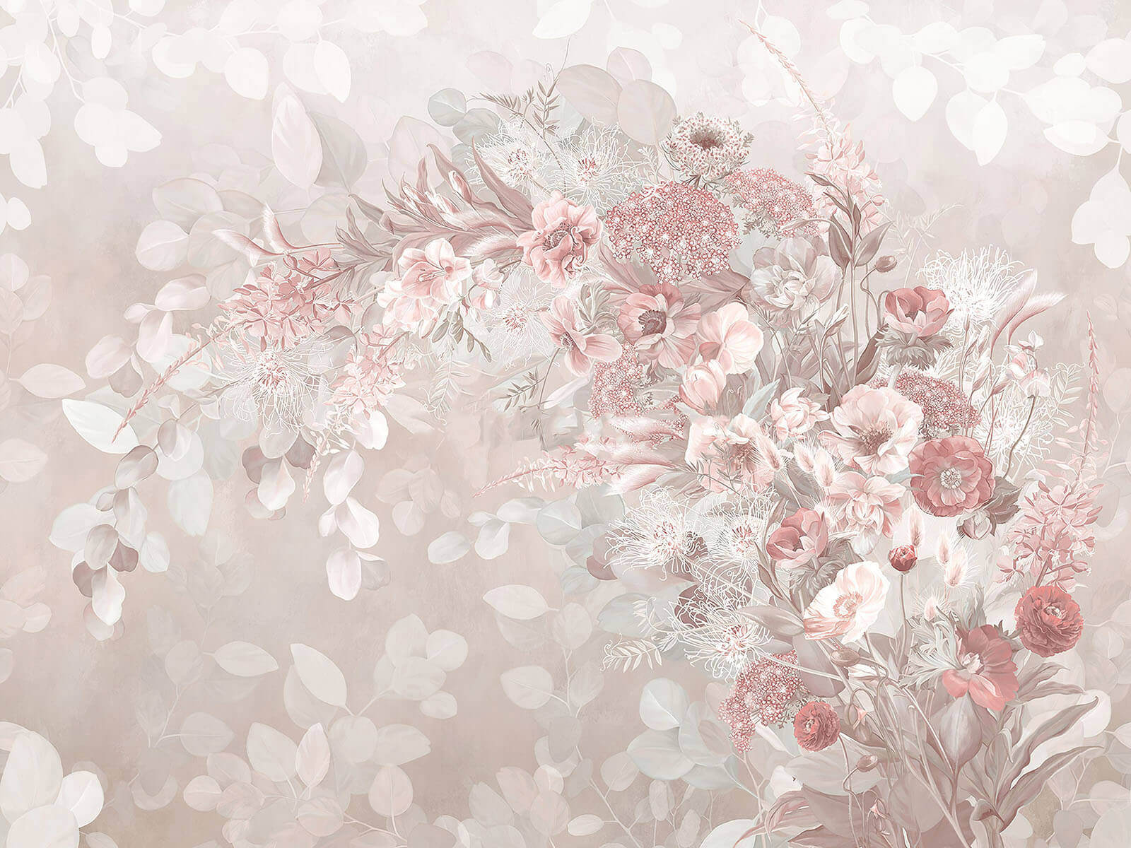 Verander elke kamer in een serene toevluchtsoord met “Delicate Blooms in Soft Hues”. Deze prachtige muurschildering toont een zachte waterval van bloemen die bijna liefkozende woordjes fluisteren tegen uw muren. Stelt u zich eens voor dat u elke ochtend wakker wordt met deze zachte, pastelkleurige bloemblaadjes – alsof er een tuinfeest plaatsvindt in uw woonkamer.