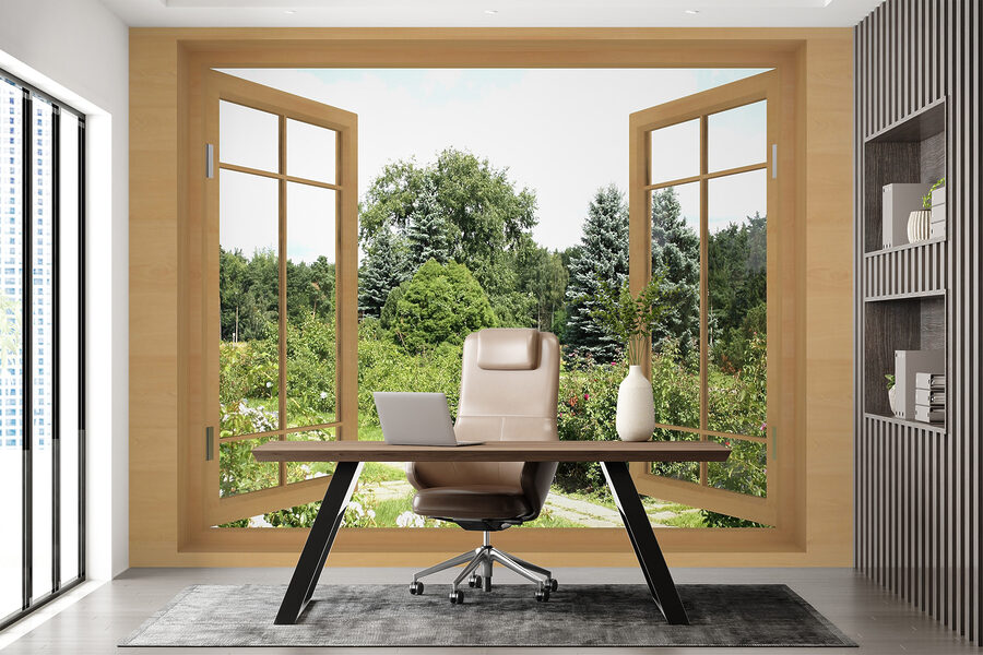 Stel je voor dat je elke dag wakker wordt in een weelderige tuin, boordevol tijdloze schoonheid, zonder dat je ook maar één plant water hoeft te geven! Deze muurschildering “Uitzicht op weelderige tuin door raam” brengt de serene charme van de natuur naar je kamer. Het is alsof je een geheime tuin hebt waar je naartoe kunt vluchten als je muren een beetje te saai aanvoelen. Of je nu in een drukke stad woont of in een rustige buitenwijk, met deze muurschildering kun je je meteen rustig terugtrekken. Denk aan de rust – het zonlicht dat door de bladeren valt, het levendige groen en misschien zelfs af en toe een vogel. Het kan je woonkamer, slaapkamer of zelfs je kantoor doen aanvoelen als een gezellig toevluchtsoord. Bovendien is het perfect voor mensen met een niet zo groene vingers (knipoog), want het is onderhoudsvrij. Stel je voor dat je zit met een kopje thee, een goed boek en dat uitzicht! Best geweldig, toch?