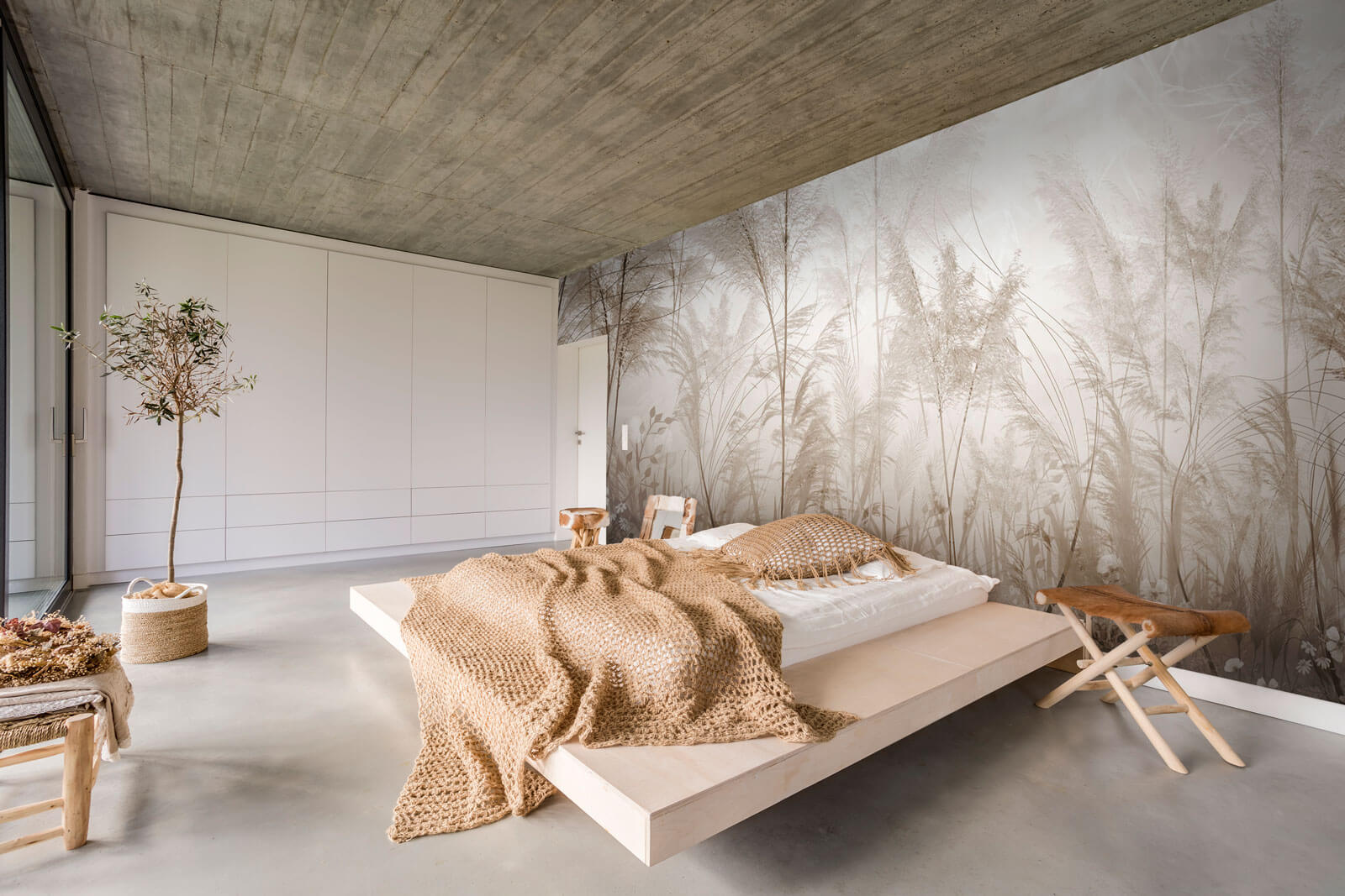 De aardetinten van deze muurschildering zorgen voor een rustgevende achtergrond, waardoor je hem gemakkelijk kunt mixen en matchen met je favoriete inrichting. Stel je een dampende kop thee voor, terwijl je wegzakt in een comfortabele stoel en helemaal opgaat in een goed boek. De subtiele schoonheid van het gras danst speels in het licht en misschien, heel misschien, inspireert het tot een moment van dagdromen. Het is het soort kunst dat een eenvoudige muur doet aanvoelen als een scène die rechtstreeks afkomstig is van een vredig platteland. Geef je muren een frisse wind!