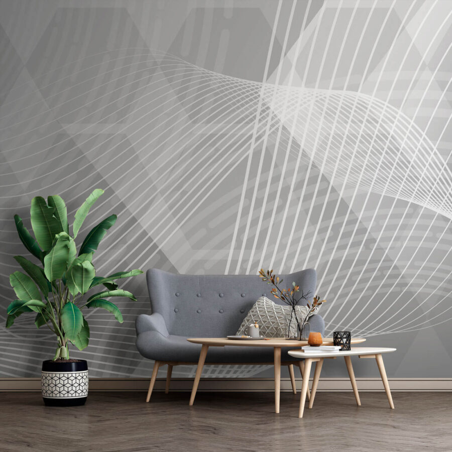 Transformeer elke ruimte met deze prachtige muurschildering, “Grijze en witte achtergrond met witte lijnen”. Het is alsof u uw muren aankleedt in een strakke, moderne outfit – beschouw het als mode voor uw huis! De zachte grijze basis danst met elegante witte lijnen en creëert een luchtige, open sfeer die een kamer groter kan doen lijken.