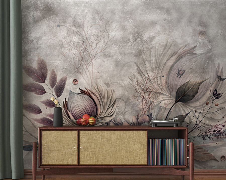 Stel je voor dat je een stijlvolle ruimte binnenstapt waar zachte bloemblaadjes dansen tegen een gedempte achtergrond – klinkt dromerig, toch? Deze muurschildering, “Soft Petals Against a Muted Backdrop”, is als een zacht gefluister van de natuur, perfect voor het creëren van een gezellige sfeer. De delicate bloemen en subtiele tinten stralen warmte uit, waardoor het een aanrader is voor iedereen die een vleugje groen wil zonder het gedoe van echte planten. Stel je een rustige avond voor, met een kopje thee in je hand, starend naar deze vredige bloemen – alsof je elke dag een minivakantie hebt. Het zijn de kleine dingen, nietwaar? Of het nu in de woonkamer of slaapkamer is, deze muurschildering voegt precies de juiste hoeveelheid charme en elegantie toe. Wie zou dat niet willen?