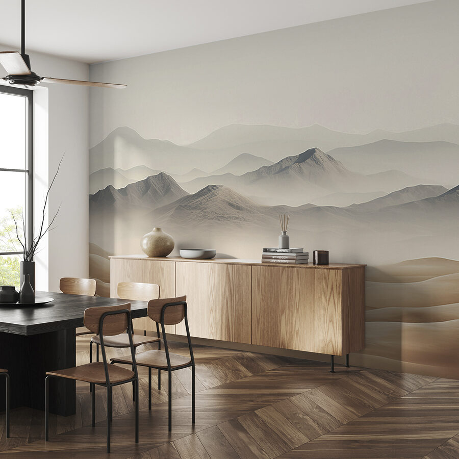 Stel je de kalmerende sfeer voor van deze muurschildering “Zandduinen in de woestijn”. Het is alsof je aan de rand van het niets staat, starend naar eindeloos glooiend zand en wazige bergen in de verte. Perfect voor iemand die van de natuur houdt of hunkert naar een gevoel van rust in hun ruimte – vooral als je een ontsnappingsroute nodig hebt uit je stoffige kantoor of rommelige woonkamer. Bovendien is het het soort kunst dat je uitnodigt om te verdwalen in de lagen, bijna als een minivakantie zonder jetlag. Dus, durf ik te zeggen? Het zou de perfecte achtergrond kunnen zijn voor je volgende meditatiesessie of dat knusse leeshoekje waar je aan denkt. Het fluistert gewoon “Relax, je bent thuis”.