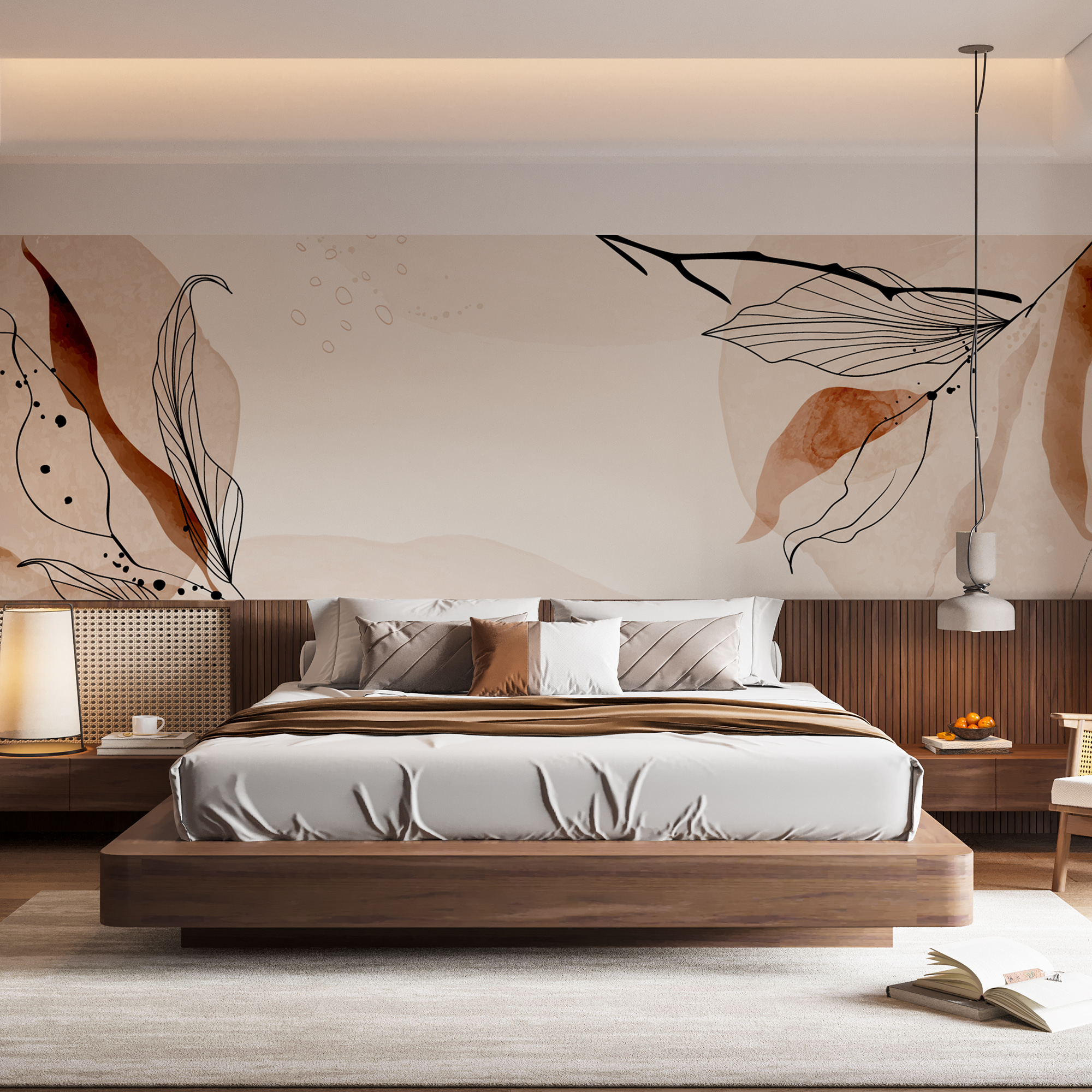 Zeg hallo tegen “Abstracte bladeren met aardetinten”, je nieuwe favoriete muurschildering. Stel je voor: je komt thuis na een lange dag en deze schoonheid begroet je met haar zachte, natuurlijke charme. Het is als een warme knuffel voor je ogen. De mix van aardetinten en delicate bladmotieven roept een vredige sfeer op – perfect om tot rust te komen met een kopje thee of om een kalmerende sfeer te creëren voor gasten. Of je nu je woonkamer opknapt of zen toevoegt aan je kantoor, deze muurschildering brengt de sereniteit van de natuur binnen. Een beetje modern, veel rustgevend… het smeekt er bijna om om bewonderd te worden.