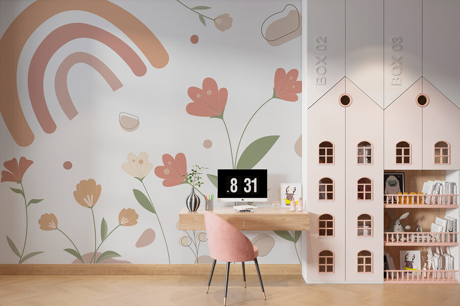 Ooit gedroomd van een stukje rustgevende schoonheid in je woonkamer? Ja, wij ook. Deze “Abstract Pastel Flowers and Rainbow” muurschildering is niet zomaar een kunstwerk, het is alsof je een serene tuin en een vleugje eigenzinnigheid in huis haalt. Stel je voor dat je een kamer binnenloopt en begroet wordt door zachte bloemen in zachte tinten, met een schattige regenboog om de boel op te vrolijken. Dit perfecte pastelkleurige ontwerp straalt rust en vreugde uit. Ideaal voor een knus hoekje of om een statement te maken in je hal – gewoon je dagelijkse dosis mooie vibes. 🌸🌈