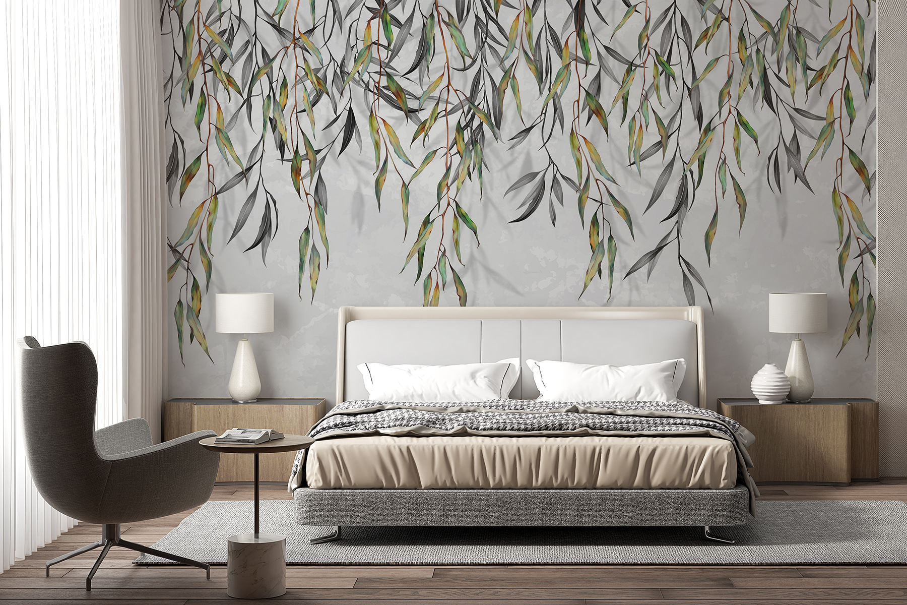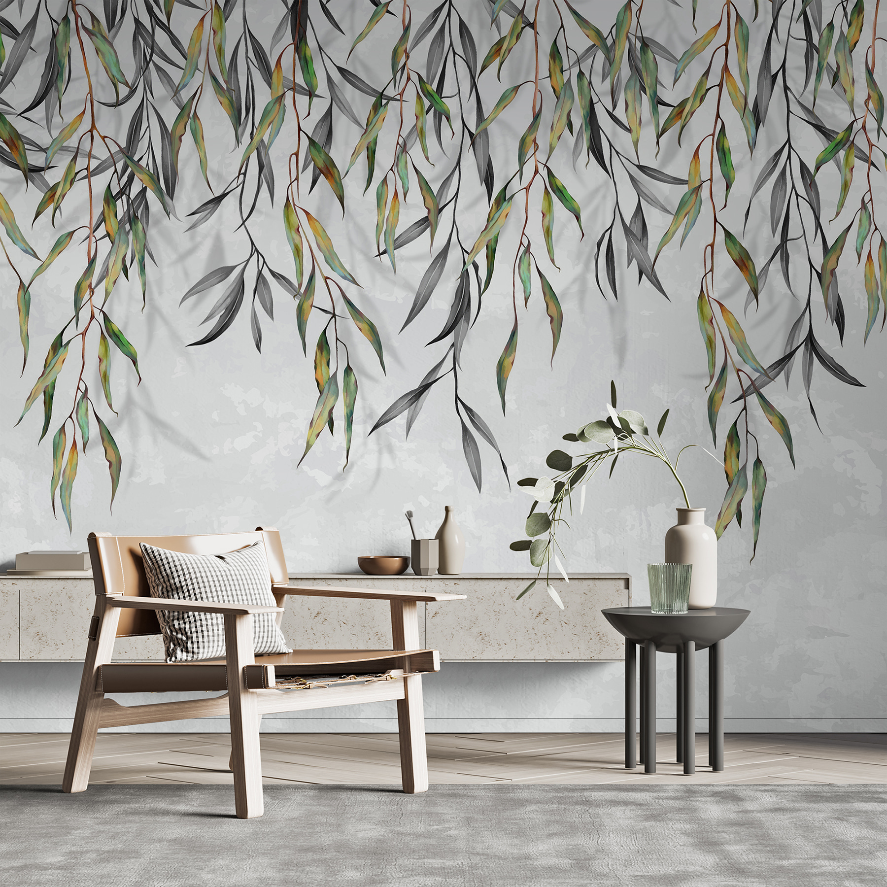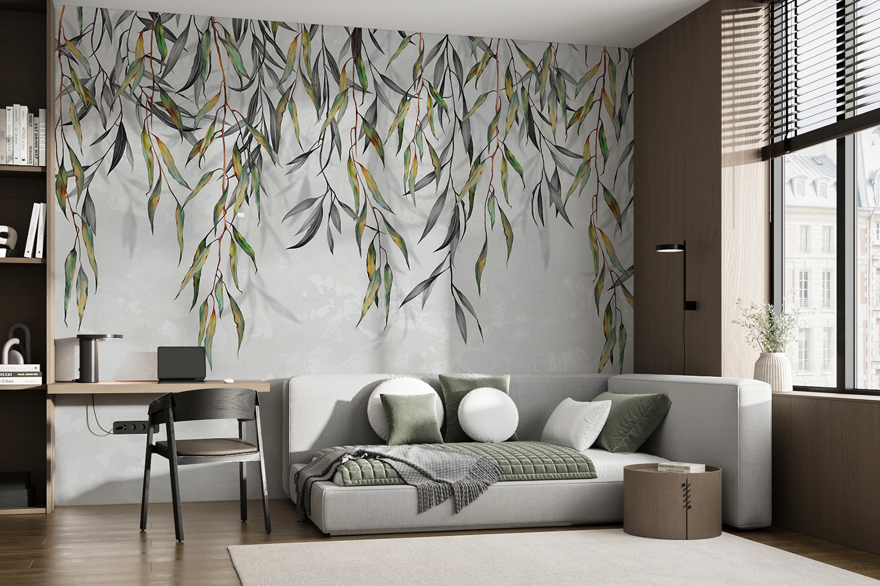 Verander een effen muur in een serene ontsnapping met deze mooie wilgenbladeren die dansen in de wind. Stel je voor dat je een kamer binnenloopt waar het subtiele gezwaai van de natuur een kalme sfeer brengt – de perfecte achtergrond voor gezellige praatjes of rustig lezen. De zachte kleuren passen prachtig bij elkaar en nodigen warmte en een vleugje buiten uit. Het is alsof je een stukje vredig bos in je woonkamer hebt. Vrienden zouden het zelfs kunnen verwarren met een slimme ontsnapping naar je favoriete park. Met deze muurschildering kan elke dag aanvoelen als een zonnige wandeling tussen de bomen.