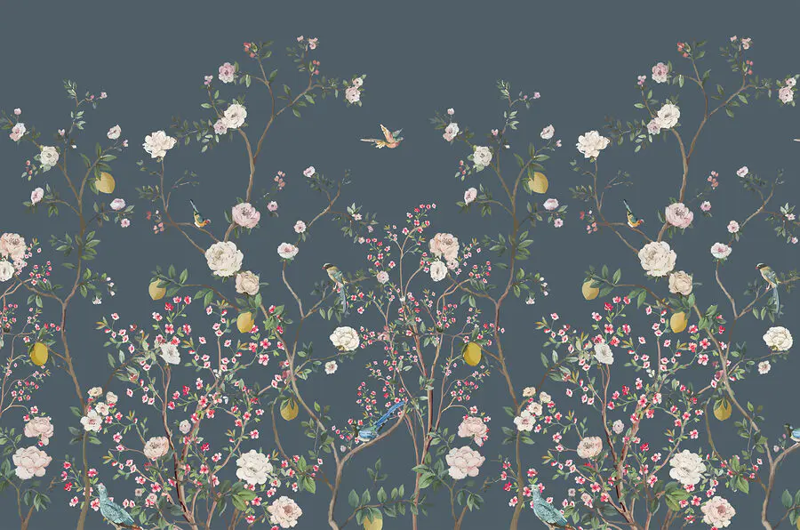 Fotobehang Vogels en bloesems op takken. (SKU: w00852v1)