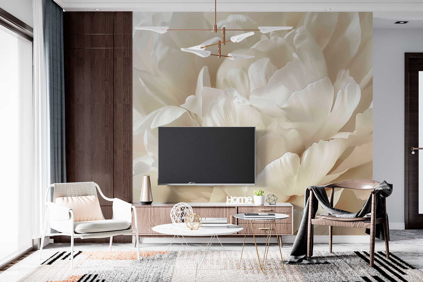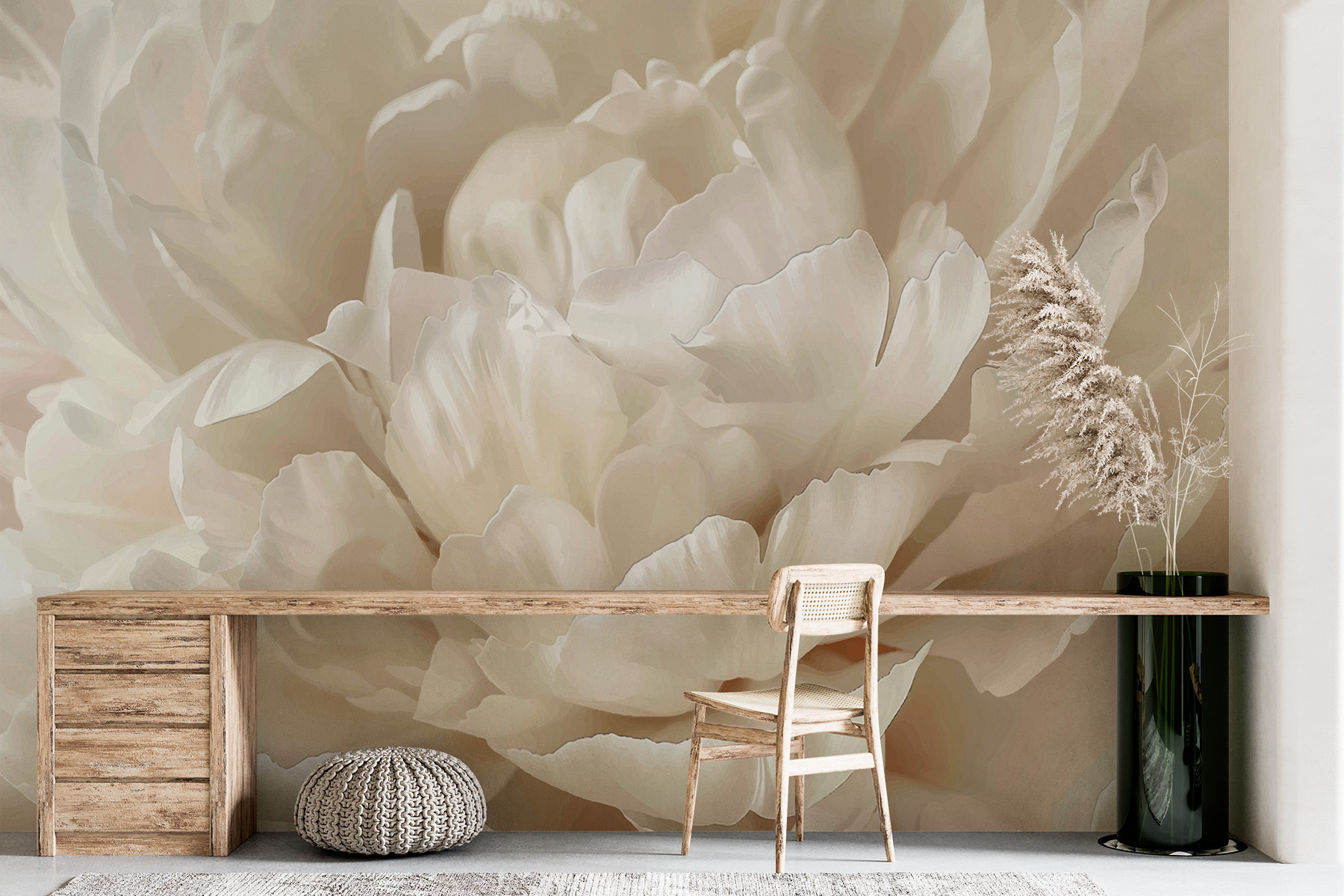 Verander een saaie muur in een sereen toevluchtsoord met de muurschildering “Elegant Bloom in Soft Focus”. Stel je voor dat je een knus hoekje binnenstapt waar tere pioenenblaadjes lijken te zweven als zacht gefluister in een eindeloze tuin. De zachte tinten creëren een rustgevende sfeer, perfect om thee te drinken of te verdwalen in een goed boek. Vrienden zullen bewonderen hoe de muurschildering een vleugje natuur binnenshuis brengt – daar heb je geen groene vingers voor nodig. Het is alsof je een stukje bloemenparadijs hebt zonder de gieter! Leun achterover, ontspan en geniet van de schoonheid die op je muur bloeit.