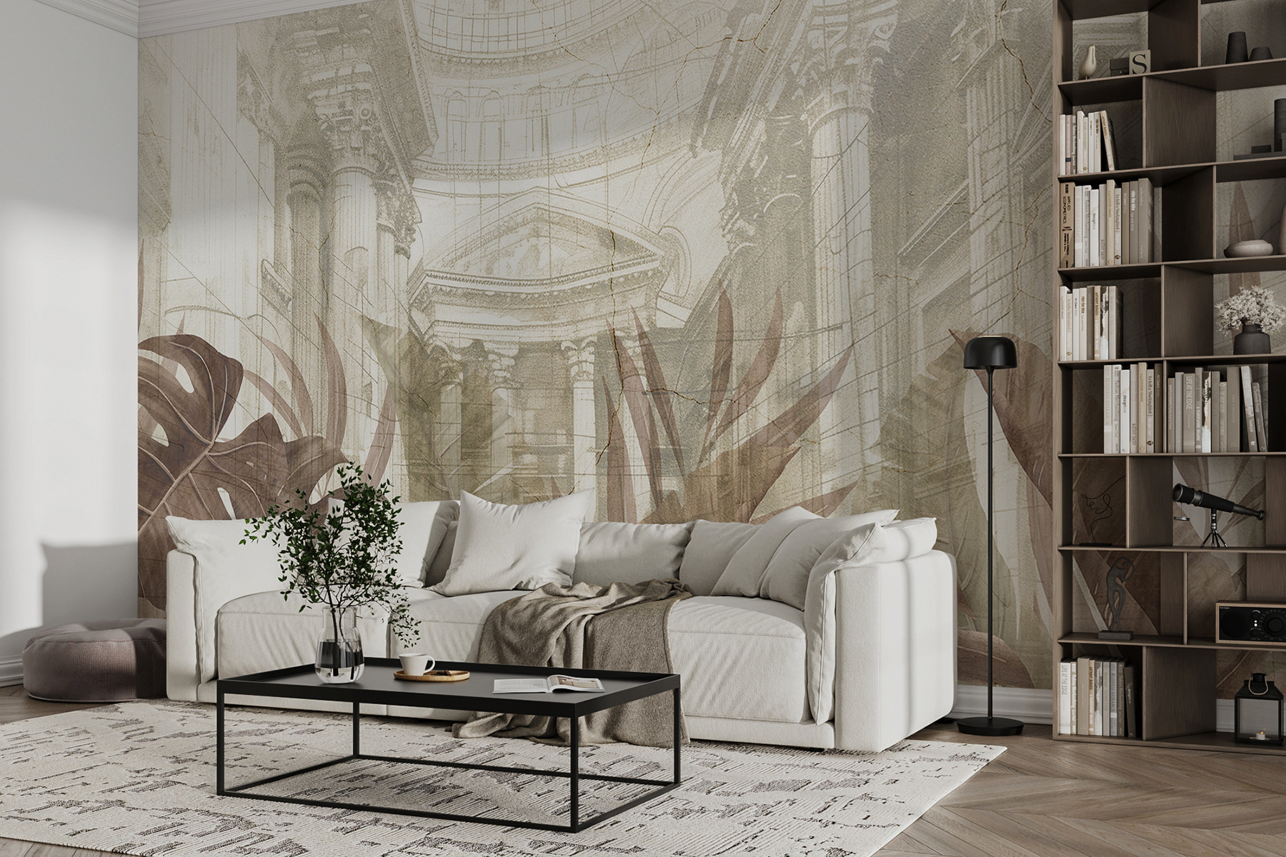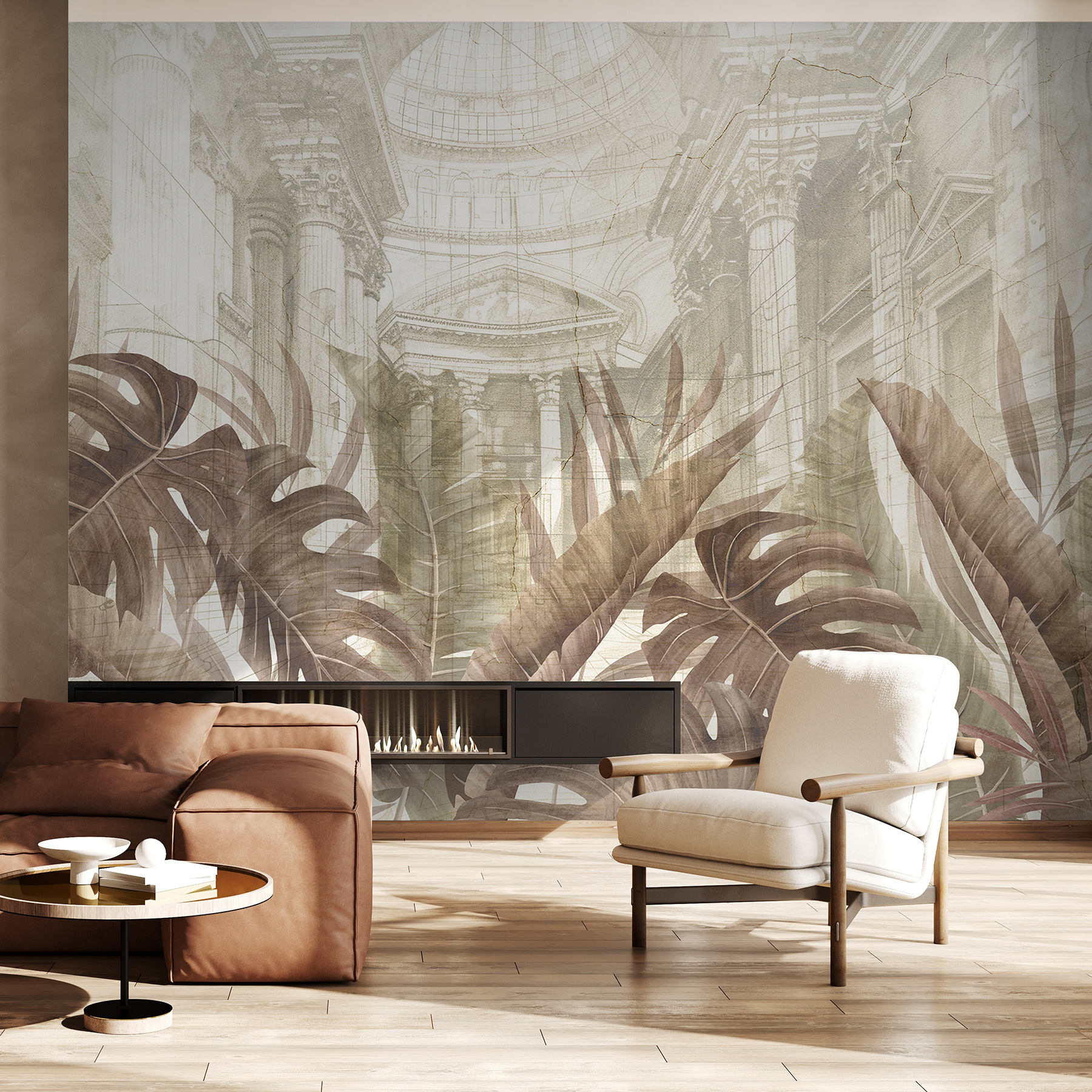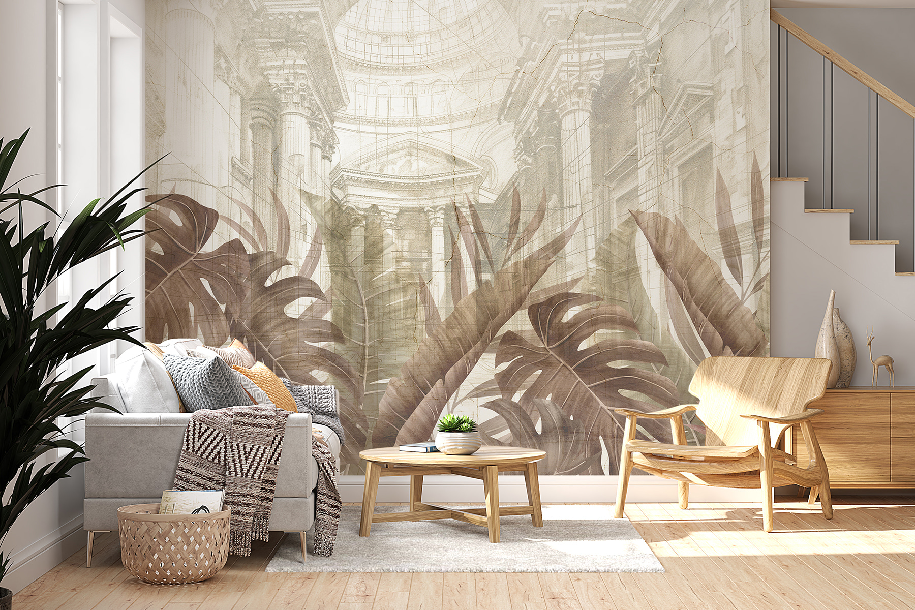 Heb je wel eens het gevoel dat je muren een oppepper kunnen gebruiken? Kijk dan eens naar de “Fotobehang w01311v1!”. Het is een coole mix van palmbladeren en een vleugje architecturale magie. Stel je dit eens voor in je woonkamer – het is alsof je de buitenlucht naar binnen haalt, zonder al het ongedierte. De gedempte grijze en bruine tinten zijn super rustgevend, perfect om tot rust te komen met een boek of om indruk te maken op je vrienden tijdens je volgende spelletjesavond. De bladeren voelen bijna levend aan en wiegen zachtjes bij elke blik. Bovendien zit deze muurschildering in een heleboel leuke categorieën, zoals “Bladeren muurschilderingen” en “Muurschildering Palmblad”, dus je weet dat het een favoriet is!
