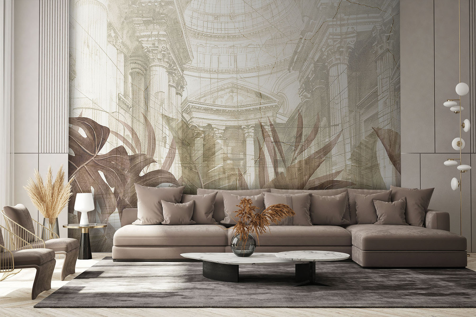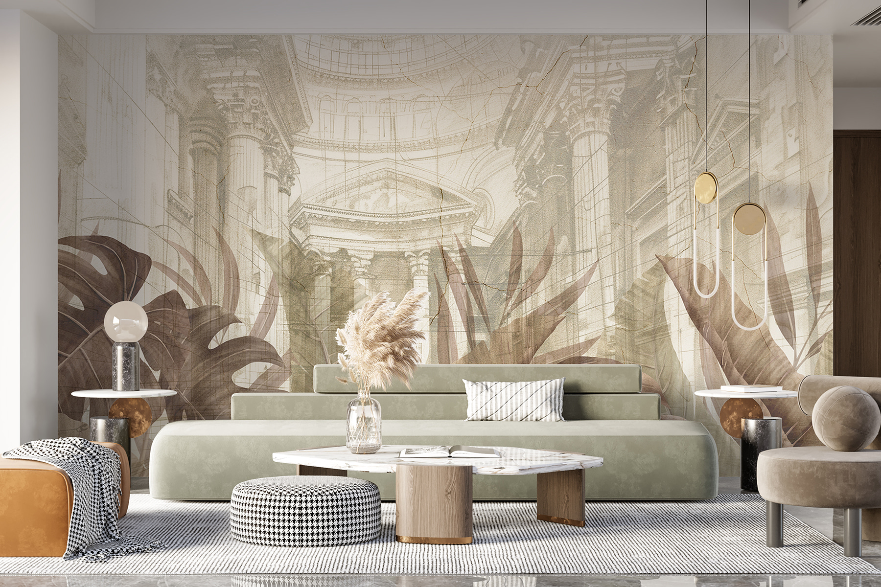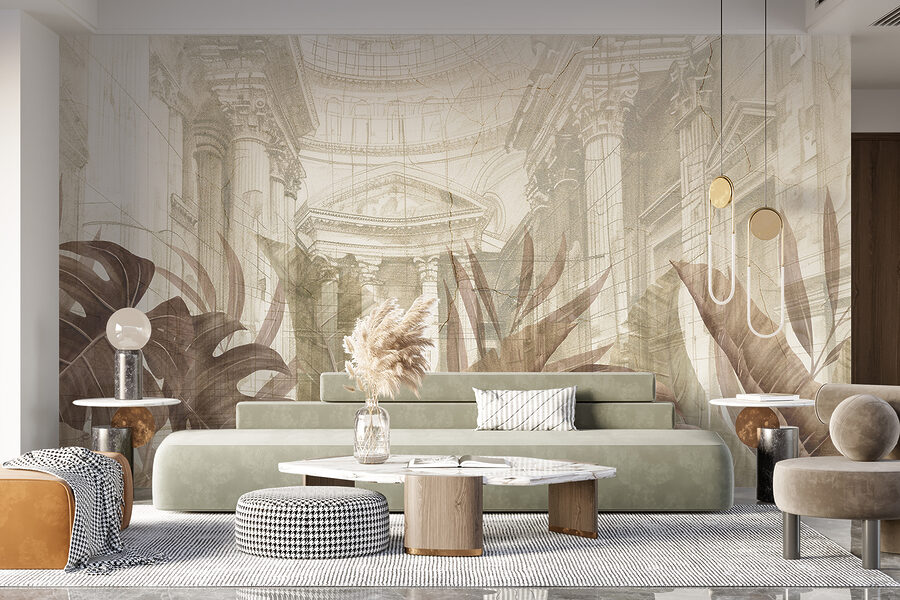 Heb je wel eens het gevoel dat je muren een oppepper kunnen gebruiken? Kijk dan eens naar de “Fotobehang w01311v1!”. Het is een coole mix van palmbladeren en een vleugje architecturale magie. Stel je dit eens voor in je woonkamer – het is alsof je de buitenlucht naar binnen haalt, zonder al het ongedierte. De gedempte grijze en bruine tinten zijn super rustgevend, perfect om tot rust te komen met een boek of om indruk te maken op je vrienden tijdens je volgende spelletjesavond. De bladeren voelen bijna levend aan en wiegen zachtjes bij elke blik. Bovendien zit deze muurschildering in een heleboel leuke categorieën, zoals “Bladeren muurschilderingen” en “Muurschildering Palmblad”, dus je weet dat het een favoriet is!