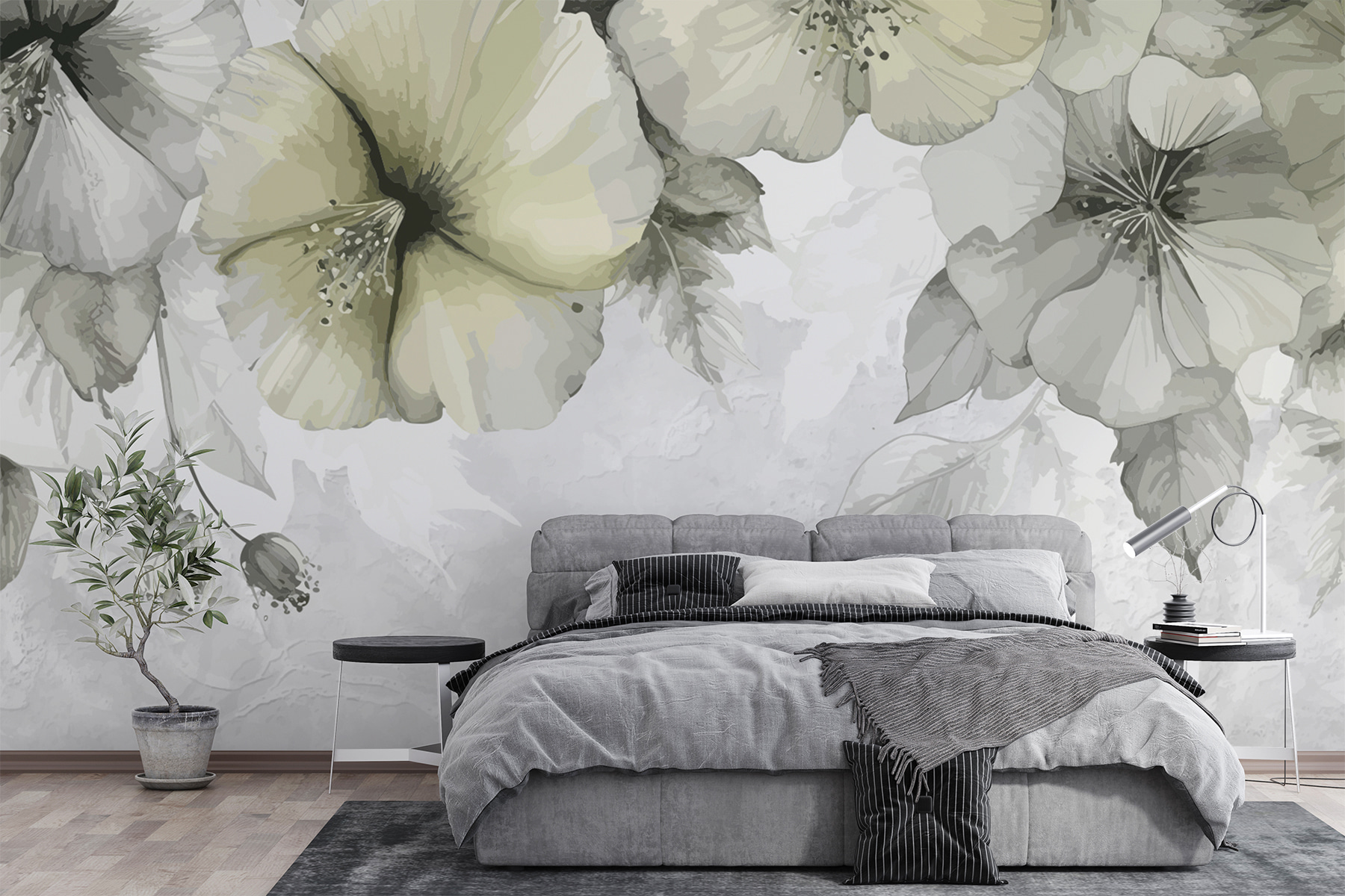 Bekijk deze prachtige muurschildering “Fotobehang w01401v2” – perfect om een saaie ruimte op te vrolijken! Stel je voor dat je een kamer binnenloopt met deze weelderige, oversized bloemen die je begroeten… over een hele nieuwe sfeer gesproken! Het is alsof je een zachte, dromerige tuin naar binnen haalt – zonder dat je water hoeft te geven. De lichte, fluisterende bloemblaadjes creëren een serene achtergrond die precies goed is voor een gezellige woonkamer of zelfs een rustig leeshoekje.