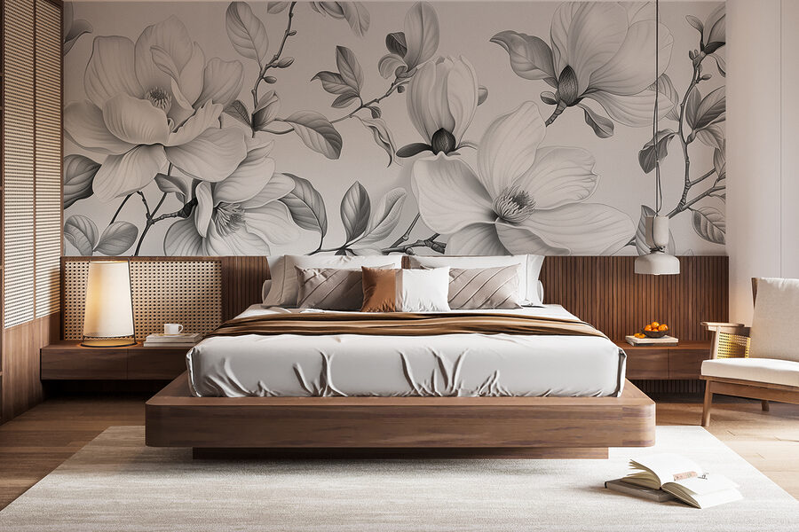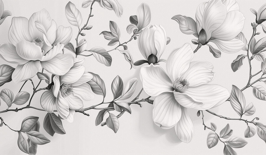 Verander een saaie muur in een kunstwerk met deze elegante monochrome bloemenmuur. Stel je voor dat je een serene tuin binnenstapt, waar elk bloemblaadje zachtjes elegantie en charme fluistert. Het ingewikkelde ontwerp brengt een rustgevende sfeer, perfect voor elke ruimte die een vleugje natuur nodig heeft. Stel je voor: vrienden die samenkomen en deze prachtige achtergrond bewonderen, en misschien zelfs een drankje morsen van opwinding – hoeps! Maar maak je geen zorgen, het gaat allemaal om de ervaring, toch? Deze muurschildering geeft de essentie van rust weer en past moeiteloos bij elke decoratiestijl. Breng een frisse wind in huis!