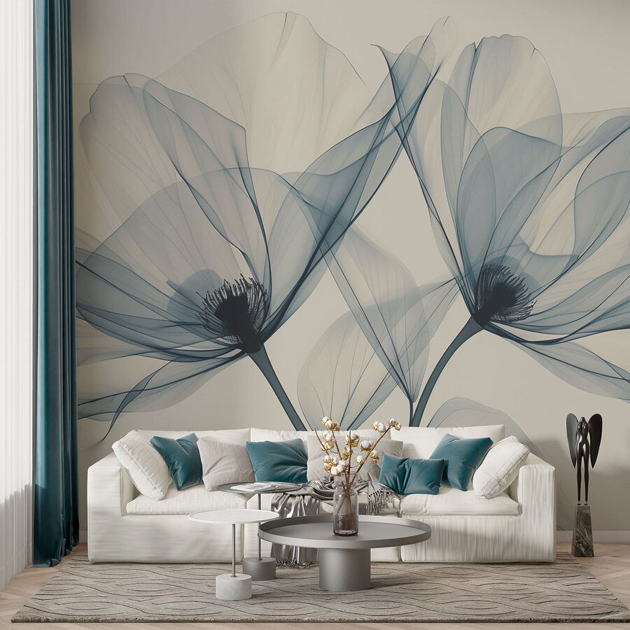 Heb je er ooit van gedroomd om met één blik elegantie in je woonkamer te brengen? Dan is deze “Fotobehang w01483” misschien iets voor jou – de essentie van de natuur verpakt in verbluffend zachte tinten en artistieke details. Het is alsof delicate bloemen door je ruimte waaien – zonder de pollen! Stel je die reusachtige bloemblaadjes voor die rustig dansen onder het zonlicht… De mix van spookachtige blauwtinten en wit fluistert gewoon rust uit.