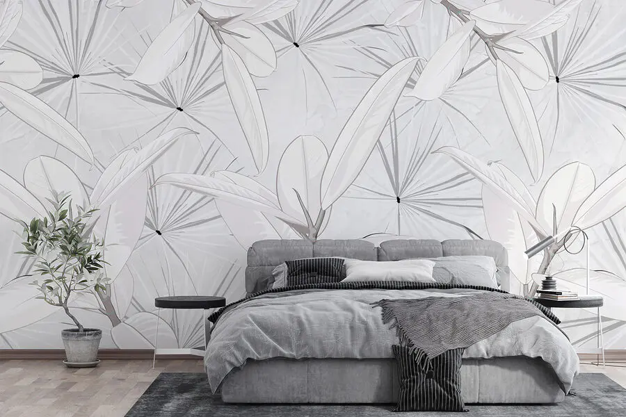 Stel je eens voor dat je een kamer binnenstapt waar de natuur je zachtjes toefluistert. Deze muurschildering, met zijn delicate witte bladeren tegen een zachtgrijze achtergrond, voelt aan als een serene wandeling in een lommerrijk wonderland. Perfect voor elke ruimte die hunkert naar een vleugje kalme elegantie! Het is alsof je je kamer in een gezellige, chique deken hult – zonder de plooien. Of je nu thee drinkt of in een boek duikt, deze muurschildering verandert elke muur in een vredige ontsnapping. Bonus: je hoeft geen water te geven! Decor dat een frisse neus haalt zonder binnenshuis te hoeven zijn.