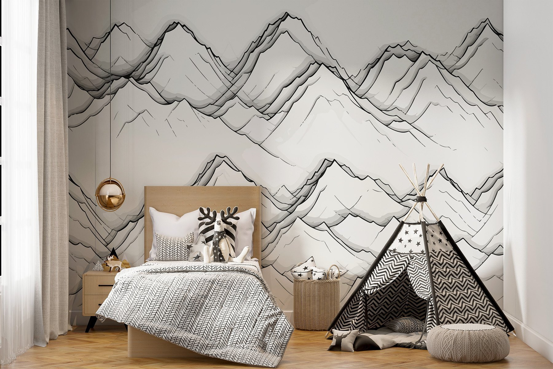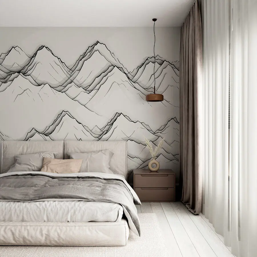 Stel je voor dat je thuiskomt in een ruimte die eruitziet als een sereen uitje! Deze “Drawing of Mountains” muurschildering is alsof je een rustige alpine scène binnenstapt zonder je huis te verlaten. Perfect voor de rusteloze reiziger of dagdromer. De zachte tinten brengen een gevoel van rust – wandelschoenen zijn niet nodig. Het is een gespreksstarter die gasten zeker even laat stilstaan en bewonderen. Stel je voor dat je koffie drinkt terwijl je ogen over elke piek dwalen. Dit is niet zomaar decor; het is een dagelijkse ontsnapping, daar aan je muur.