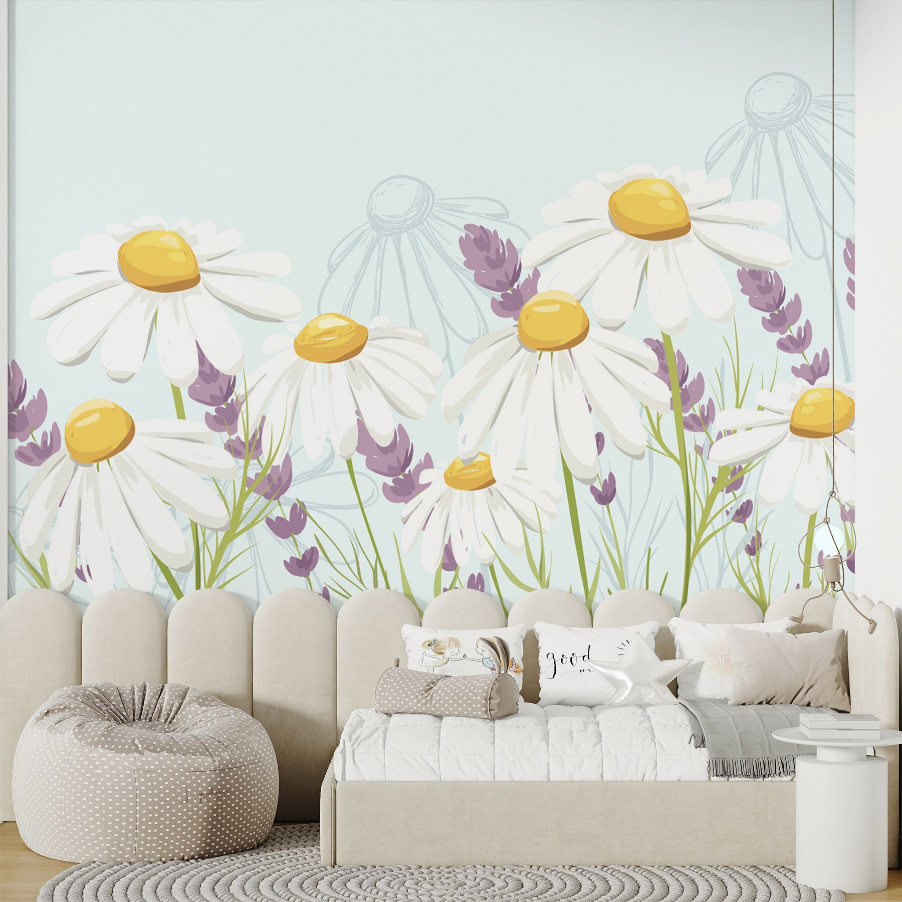 Stel je voor: een fluisterend briesje op een warme middag, zonlicht dat door het raam naar binnen schijnt en daar op de muur een prachtige muurschildering van witte bloemen die dansen met takjes lavendel. Deze muurschildering is niet alleen maar decor; het is alsof je een tuin binnenshuis haalt zonder de gieter! Stel je eens voor hoe fijn het is om wakker te worden met fleurige bloemen die je dagelijks begroeten. Het voegt een vleugje vrolijkheid toe, perfect om aan koffie te nippen en te dromen over avonturen of om je gewoon te koesteren in de huiselijke sfeer. En die kleuren? Ze zijn een zachte herinnering aan de rust van de natuur en veranderen elke ruimte in een sereen toevluchtsoord. Wie zou dat niet willen?