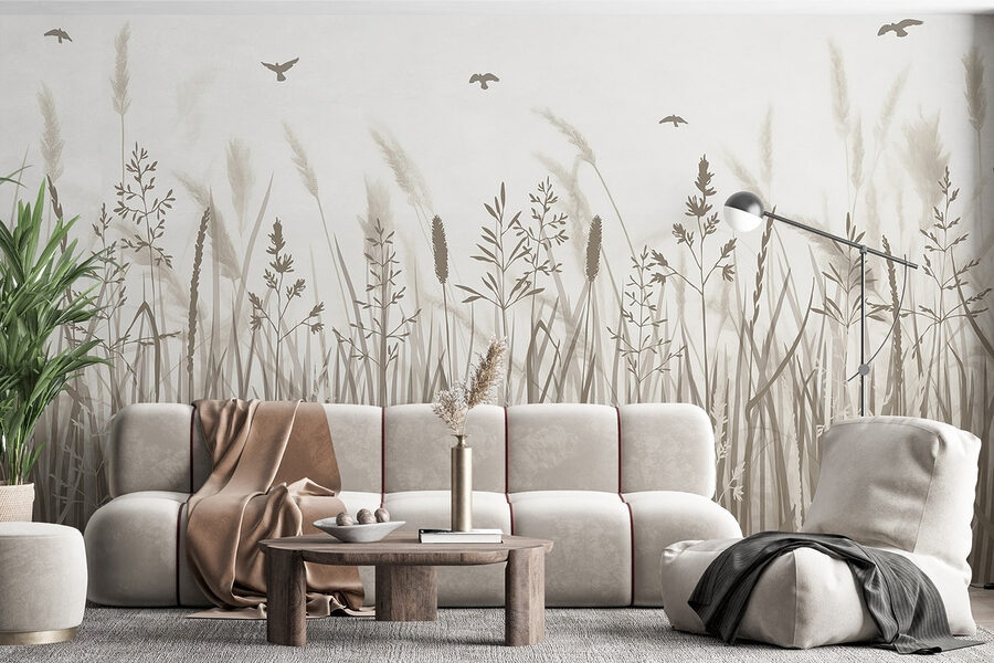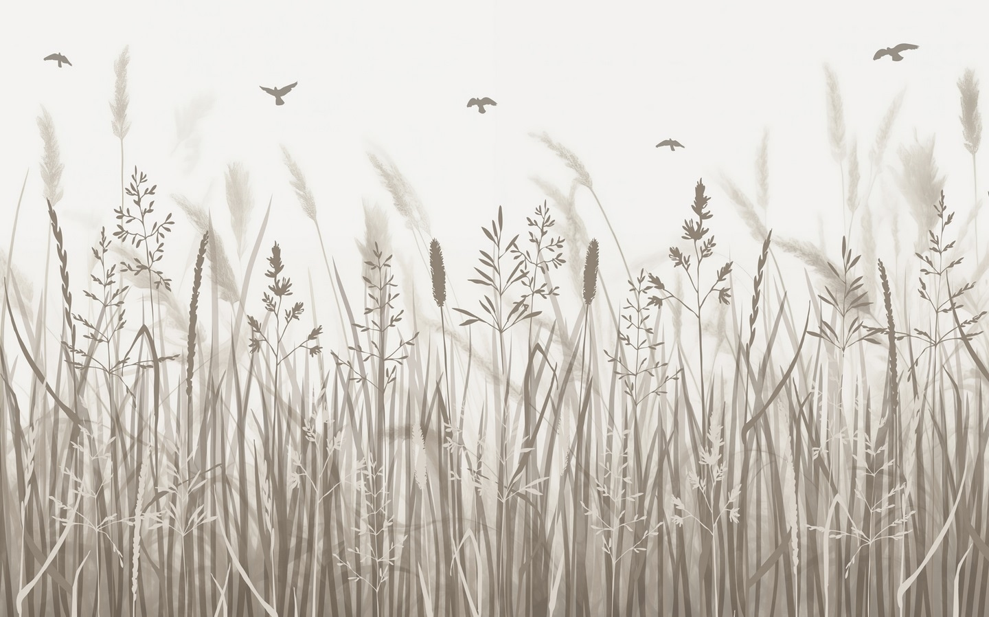 Verander een saaie muur in een serene ontsnapping met de muurschildering “Grasveld met vliegende vogels”! Stel je voor dat je een zacht gesproken weide binnenstapt, waar het hoge gras zachtjes wiegt, bijna alsof het geheimen fluistert. De subtiele tinten en delicate silhouetten creëren een kalme sfeer, perfect om tot rust te komen na een lange dag. Het is alsof je een stukje natuur binnenshuis hebt zonder de vervelende insecten. Of het nu in een gezellig hoekje is of boven een bureau, deze muurschildering brengt een vleugje charme en sereniteit die moeilijk te weerstaan is. Vrienden zullen het heerlijk vinden om hier te kletsen; misschien denken ze wel dat het een raam naar de buitenlucht is! Perfect voor natuurliefhebbers of iedereen die behoefte heeft aan een beetje frisse lucht in hun ruimte.