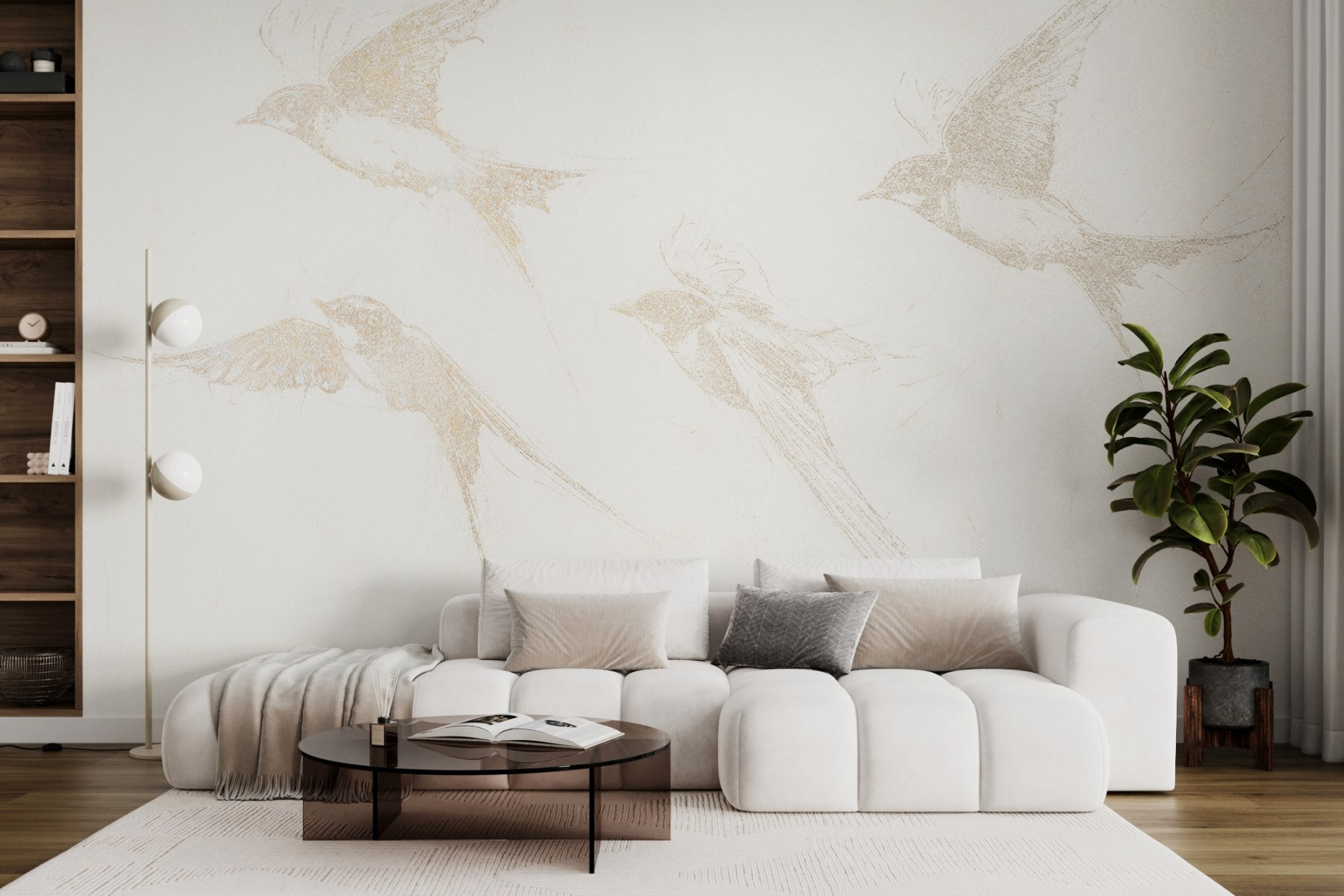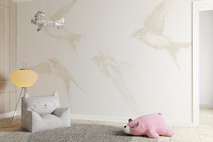 Verhoog je ruimte met deze prachtige muurschildering met een groep vogels in vlucht. Het is net alsof je een stukje natuur op je muur hebt – je hebt geen verrekijker nodig om vogels te kijken! Het zachte, schetsmatige ontwerp voegt een zacht tintje toe, waardoor het perfect is voor elke kamer. Stel je voor dat je ‘s ochtends aan je koffie nipt terwijl je deze sierlijke wezens voorbij ziet zweven. Met een beetje eigenzinnigheid en heel veel elegantie nodigt deze muurschildering uit tot gevoelens van vrijheid en lichtheid. Ideaal om een rustige sfeer te creëren, en wie wil er nu niet een beetje natuur in huis? Perfect voor die knusse hoekjes waar je tot rust wilt komen.