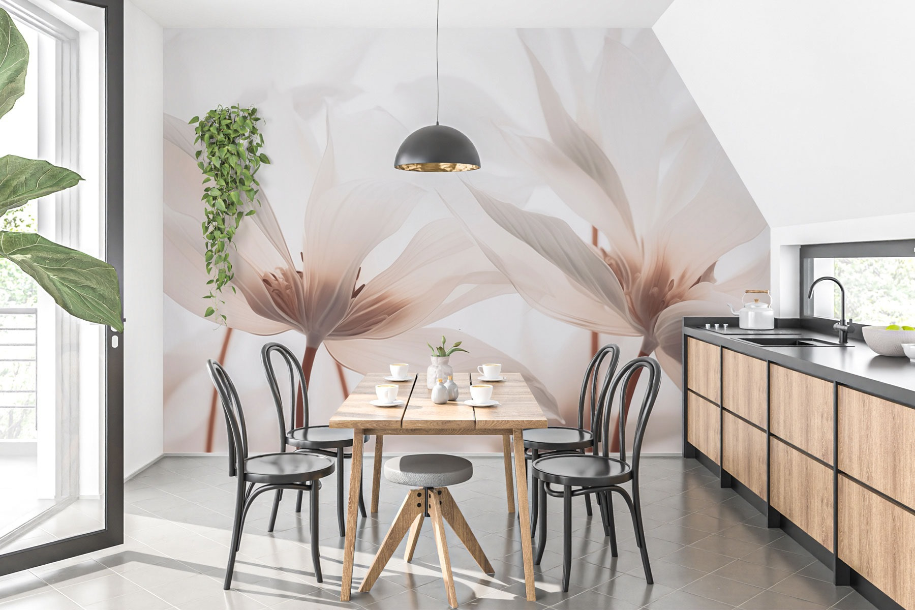 Transformeer elke kamer met de betoverende allure van “Delicate Petals in Soft Hues”. Deze muurschildering voelt als een frisse wind, verzacht hoeken en voegt een vleugje natuurlijke schoonheid toe aan je kamer. Stel je voor dat je thee drinkt in je knusse hoekje, omringd door deze dromerige bloemen. Het zijn niet zomaar bloemen; ze nodigen uit om even stil te staan en na te denken. Het pastelkleurige palet doet wonderen, waardoor zelfs de saaiste muren tot leven komen als je eigen privétuin. Perfect voor die momenten van afkoeling waarop je contact wilt maken met de serene kant van het leven. Het is alsof je thuis een stukje rust hebt!