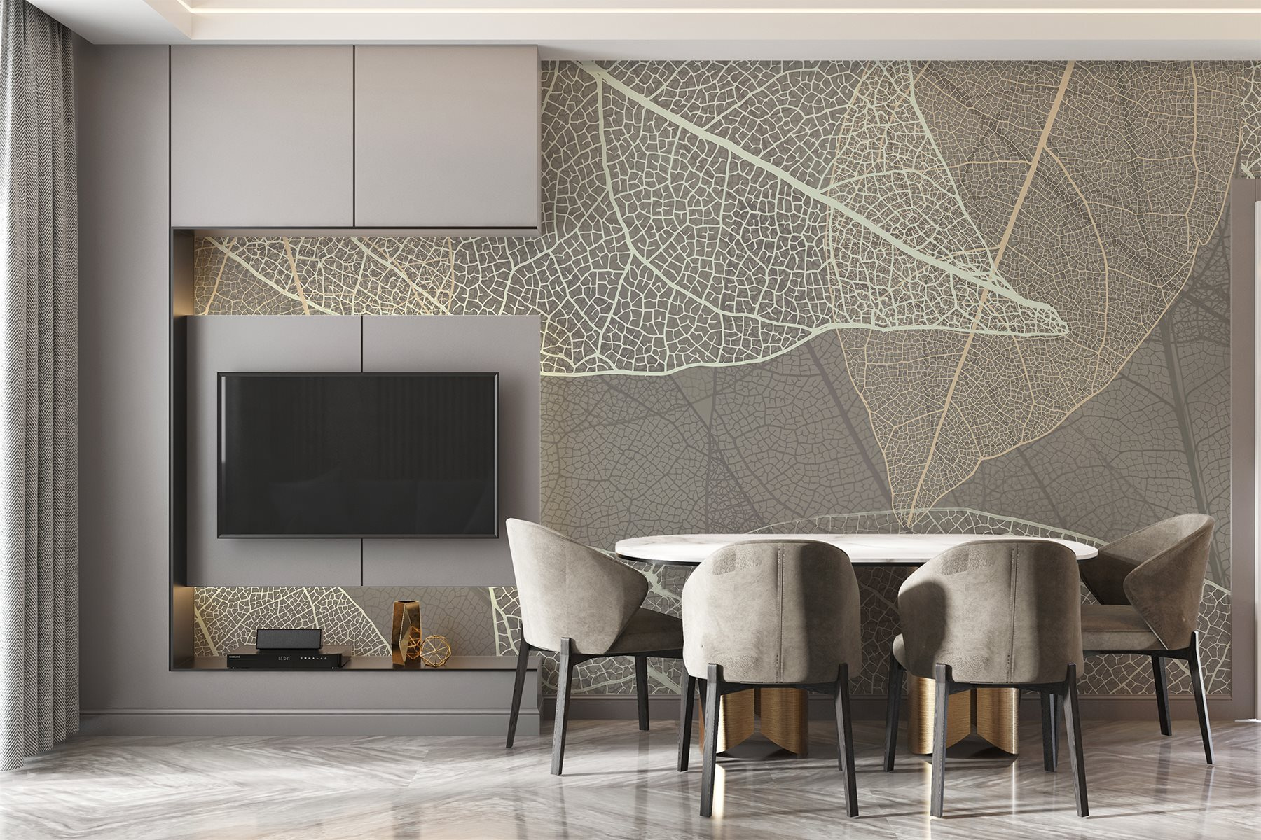 Stel je voor dat je een kamer binnenloopt waar de natuur zachtjes fluistert op de achtergrond. “Fotobehang Delicate Patterns on Natural Leaves” tovert je ruimte om in een oase van rust, waar kalmte en charme elkaar ontmoeten. De ingewikkelde ontwerpen van fragiele bladeren spelen kiekeboe met je muren en creëren een knusse omhelzing van groen zonder het onderhoud. Stel je voor dat je lekker gaat zitten met een goed boek of dat vrienden langskomen; de muurschildering wordt moeiteloos een gespreksstarter. Het voelt alsof het buitenleven zichzelf heeft uitgenodigd, waardoor elk moment in die kamer een beetje specialer wordt. Rustgevend en stijlvol, deze muurschildering is jouw ticket naar alledaagse magie. Hang hem op, bewonder hem en laat hem je decoratie naar een hoger niveau tillen!