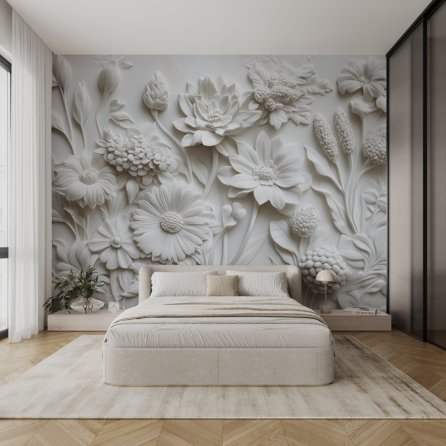 Verander elke kamer in een serene ontsnapping met deze prachtige muurschildering met een prachtig wit bloemenbeeld. Het is niet alleen kunst – het is alsof je een diepe teug frisse lucht neemt op een lentemorgen. Stel je voor dat je een ruimte binnengaat waar bloemen eeuwig bloeien, hun sierlijke vormen nodigen uit tot warmte. Elk bloemblaadje lijkt verhalen te fluisteren over de stille schoonheid van de natuur en roept herinneringen op aan zonovergoten tuinen en zachte briesjes. Deze muurschildering is perfect om een rustige sfeer te brengen in een slaapkamer of een knus hoekje en hult je muren in een elegante omhelzing zonder enige poespas. Vrienden zullen je zeker vragen waar deze prachtige achtergrond vandaan komt – stel je de glimlach eens voor!