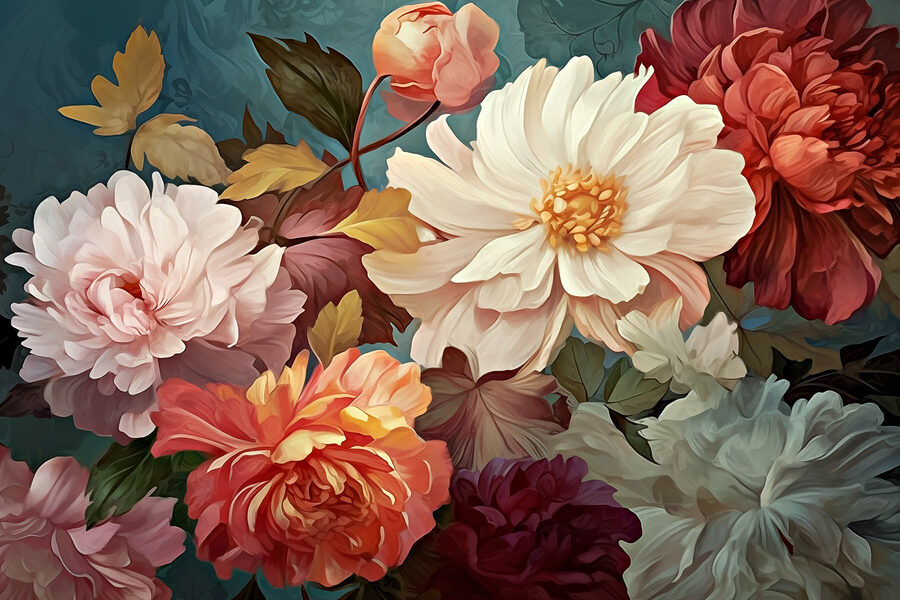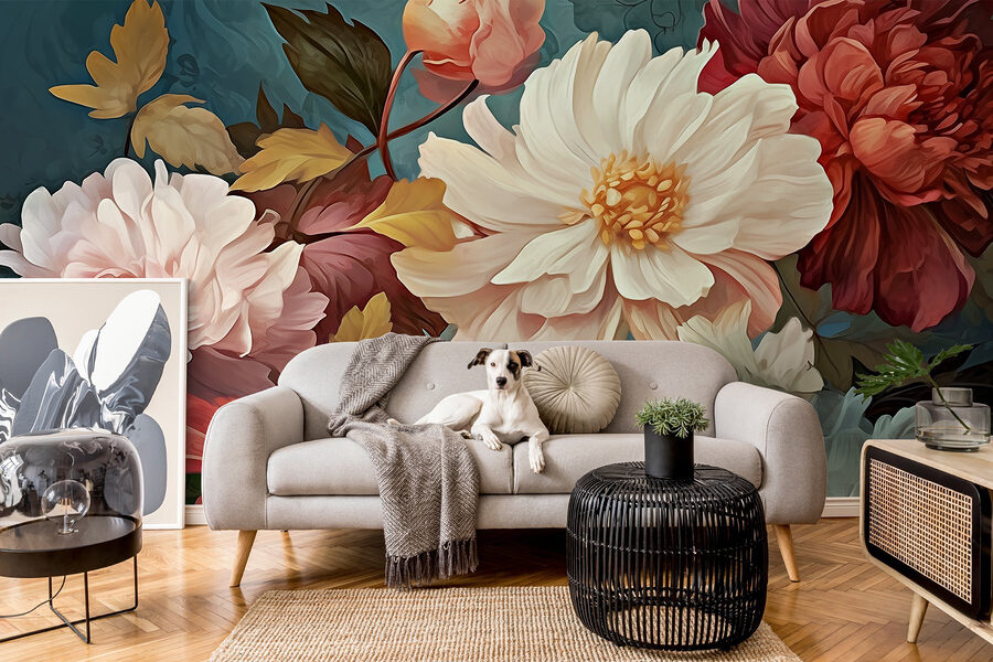 Een ruimte transformeren kan net zo verfrissend aanvoelen als de lente na een lange winter, en deze muurschildering “Levendige bloemen in zachte kleuren” doet precies dat. Zie het voor je – een reeks zachte pioenrozen en rozen, barstensvol leven, die vrolijkheid uitnodigen in elke kamer. De zachte blosjes en levendige tinten creëren een sfeer die zowel gezellig als opbeurend aanvoelt. Stel je voor dat je in een stoel gaat zitten met een goed boek, terwijl de bloemen bijna verhalen van zomeravonden fluisteren. Het is alsof je een geheime tuin aan je muur hebt, waardoor elke blik een kleine ontsnapping naar de natuur is die gewoon te mooi is om te weerstaan. Perfect om van een saaie hoek een vrolijk toevluchtsoord te maken!