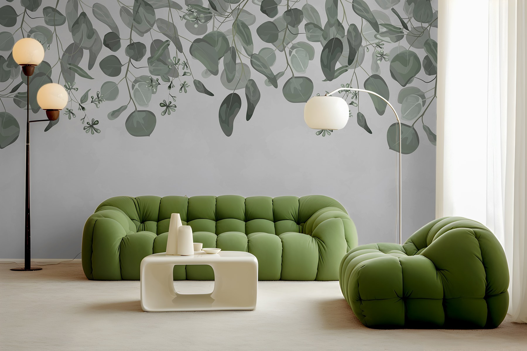 Transformeer je kamer met de muurschildering “Weelderige bladeren tegen een zachte achtergrond”. Stel je voor dat je een serene oase in je woonkamer binnenstapt! De tere bladeren dansen over de muur en creëren een luchtige sfeer. Het is net alsof je een beetje natuur in huis haalt – gelukkig zonder de insecten. De rustgevende groentinten passen prachtig bij elk kleurenschema, waardoor ze perfect zijn voor knusse hoekjes of lichte, open ruimtes. Stel je voor: je drinkt koffie terwijl je wegdroomt terwijl het zachte gebladerte fluistert: “Relax, je bent thuis.” Deze muurschildering decoreert niet alleen, maar nodigt uit tot kalmte en warmte in het dagelijks leven. En wie wil er nu niet een muur die lijkt op een vredig toevluchtsoord in het bos?
