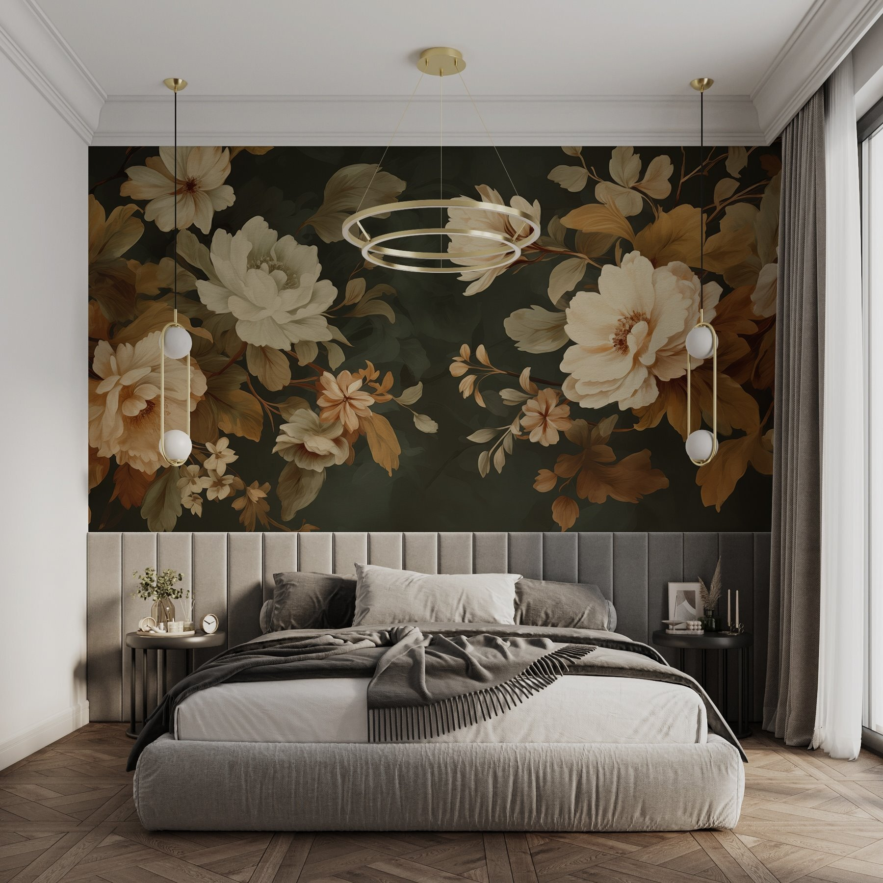 Tover elke muur om in een bloeiende tuin met de muurschildering “Elegante bloemen in warme tinten”. Stel je voor dat je een kamer binnenstapt en je onmiddellijk omarmd voelt door zachte bloemblaadjes en zachte tinten. Deze prachtige pioenrozen en grillige bloemen dansen samen en brengen een gezellige warmte die aanvoelt als een knuffel van de natuur zelf. Perfect voor rustige avonden waarop je alleen maar thee wilt drinken en inspiratie opdoen. Stel je voor dat je vrienden ontvangt en ze zijn allemaal net zo gebiologeerd – ze wijzen op de details en verbazen zich over de kunstzinnigheid. Deze muurschildering is niet alleen decor; het is een ervaring, een gespreksstarter en een dagelijkse herinnering dat schoonheid je huis kan vullen. Wat is er mooier dan dat?