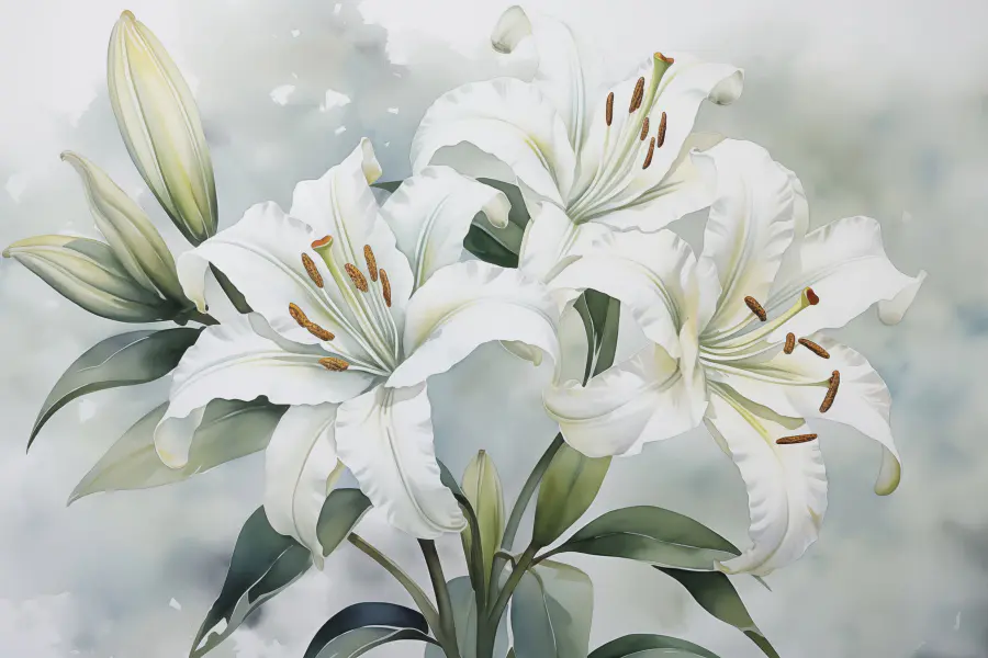 Transformeer elke ruimte met deze prachtige muurschildering van elegante witte lelies die zich koesteren in zacht licht. Het is alsof je een stukje natuur in huis haalt. Stel je eens voor dat je je knus nestelt in een kamer die helder en luchtig aanvoelt, waar die prachtige bloemen bijna lijken te wiegen in een zacht briesje. De vredige sfeer maakt het perfect voor een serene leeshoek of een rustgevende slaapkamer – wie zou daar niet wakker van willen worden? Bovendien passen de subtiele kleuren prachtig bij vrijwel elk interieur. Natuurliefhebbers zullen er helemaal weg van zijn – het is net een boeket dat nooit verwelkt! Perfect om een frisse toets aan je muur te geven en elke keer dat je er even naar kijkt een beetje vrolijkheid op te wekken.
