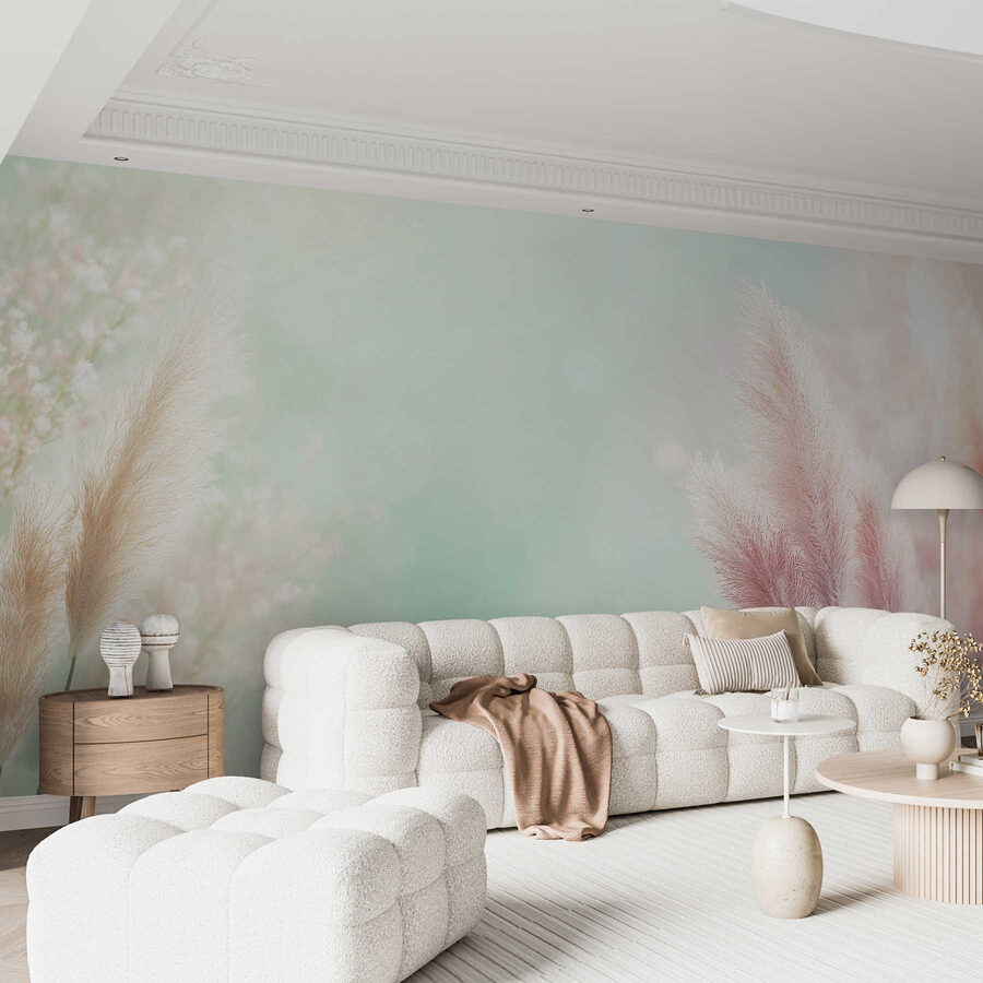 Tover elke kamer om in een serene oase met deze prachtige muurschildering met delicaat gras dat wiegt in de wind. Stel je voor dat je je leefruimte binnenstapt en het gevoel hebt dat je net een rustige weide bent binnengestapt, waar de zachte kleuren dansen en zoete woordjes fluisteren. Het is als een stukje natuur op je muren!
