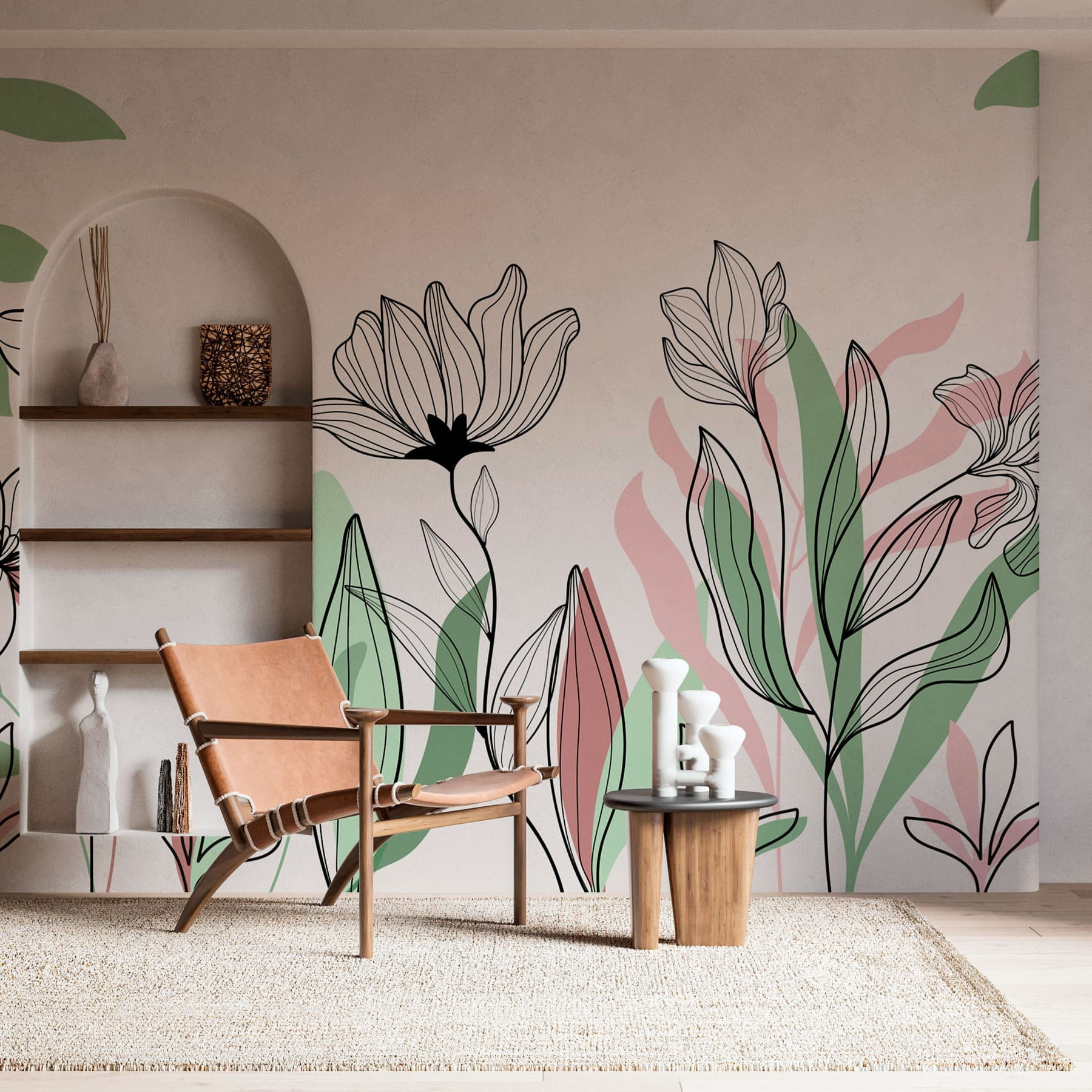 Tover een saaie muur om in een bloeiend paradijs met de muurschildering “Line of Flowers and Leaves”. Stel je voor dat je elke dag door een tuin wandelt, waar elk bloemblaadje en blaadje een frisse wind door je ruimte laat waaien. De delicate contouren vermengen zich met zachte kleuren en creëren een serene sfeer die perfect is voor elke kamer, of het nu een gezellig hoekje is of een ruime woonkamer. Vrienden zullen je misschien vragen of je een bloemist verborgen hebt. Het is als een fluistering van de natuur die je eraan herinnert om te vertragen en van het moment te genieten, en dat alles zonder dat je een groene vingers nodig hebt. Deze muurschildering is perfect om dat speciale tintje toe te voegen en is niet alleen decor; het is een ervaring.