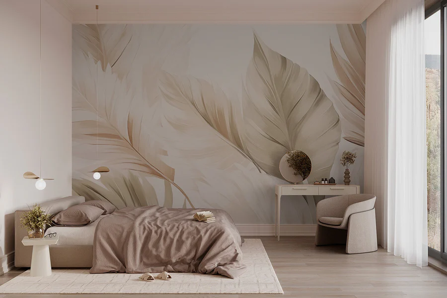 Bring the serene beauty of nature indoors with “Nature’s Delicate Leaf Patterns Unfold.” This mural transforms any wall into a calming oasis, featuring soft, elegant leaf designs that make you feel like you’ve stepped into a sunlit forest. Imagine sipping your morning coffee in a space that feels fresh and airy, the gentle greens and creams wrapping around you like a cozy hug. Perfect for living rooms or bedrooms, it adds a touch of sophistication without being too much. Whether you’re a nature lover or simply seeking a peaceful vibe, this mural is sure to elevate your space.