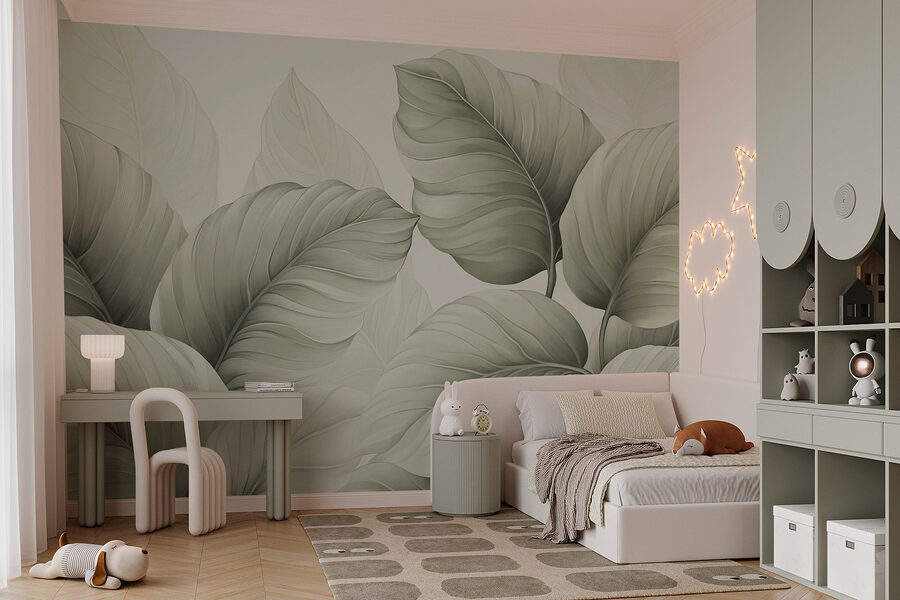 Tover die effen muur om in een weelderig uitje met de muurschildering “Lush Leaves in Soft Green Tones”. Stel je voor dat je de ruimte binnenloopt en het gevoel hebt dat je een serene jungle binnenstapt, zonder de muggen natuurlijk. Deze prachtig ontworpen bladeren geven een frisse, rustgevende sfeer – perfect voor gezellige hoekjes of zelfs die lege eethoek die smeekt om iets speciaals. Stel je voor dat je in je favoriete stoel gaat zitten met een kopje thee, omringd door deze groene schoonheid. Het is als een knuffel van de natuur, die je elke dag in rust omhult. Deze muurschildering is niet alleen decoratief, maar geeft ook een glimlach en verandert elke kamer in een door de natuur geïnspireerd toevluchtsoord.