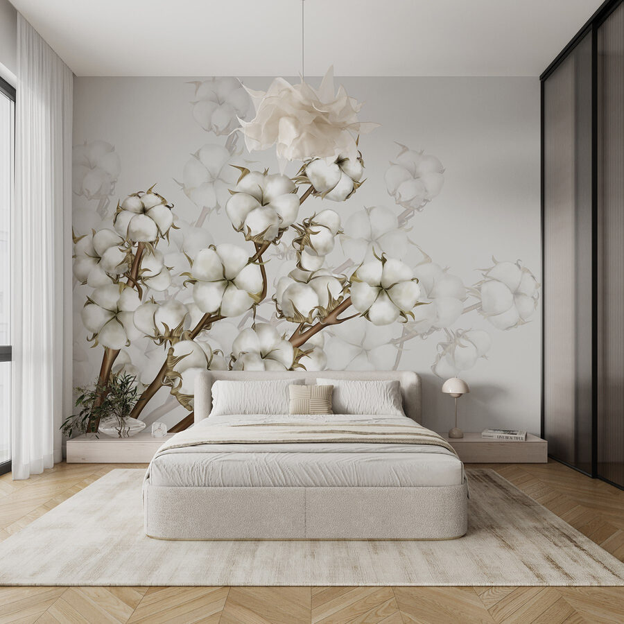 Transformeer elke ruimte met deze prachtige muurschildering met de charmante schoonheid van witte bloemen. Stel je voor dat je een kamer binnenloopt die aanvoelt alsof hij gekust wordt door een zachte lentebries, waar de zachte bloemblaadjes bijna verhalen over de gratie van de natuur fluisteren. De eenvoudige elegantie van deze bloemen brengt een serene sfeer, perfect voor een gezellige leeshoek of een stijlvolle woonkamer.