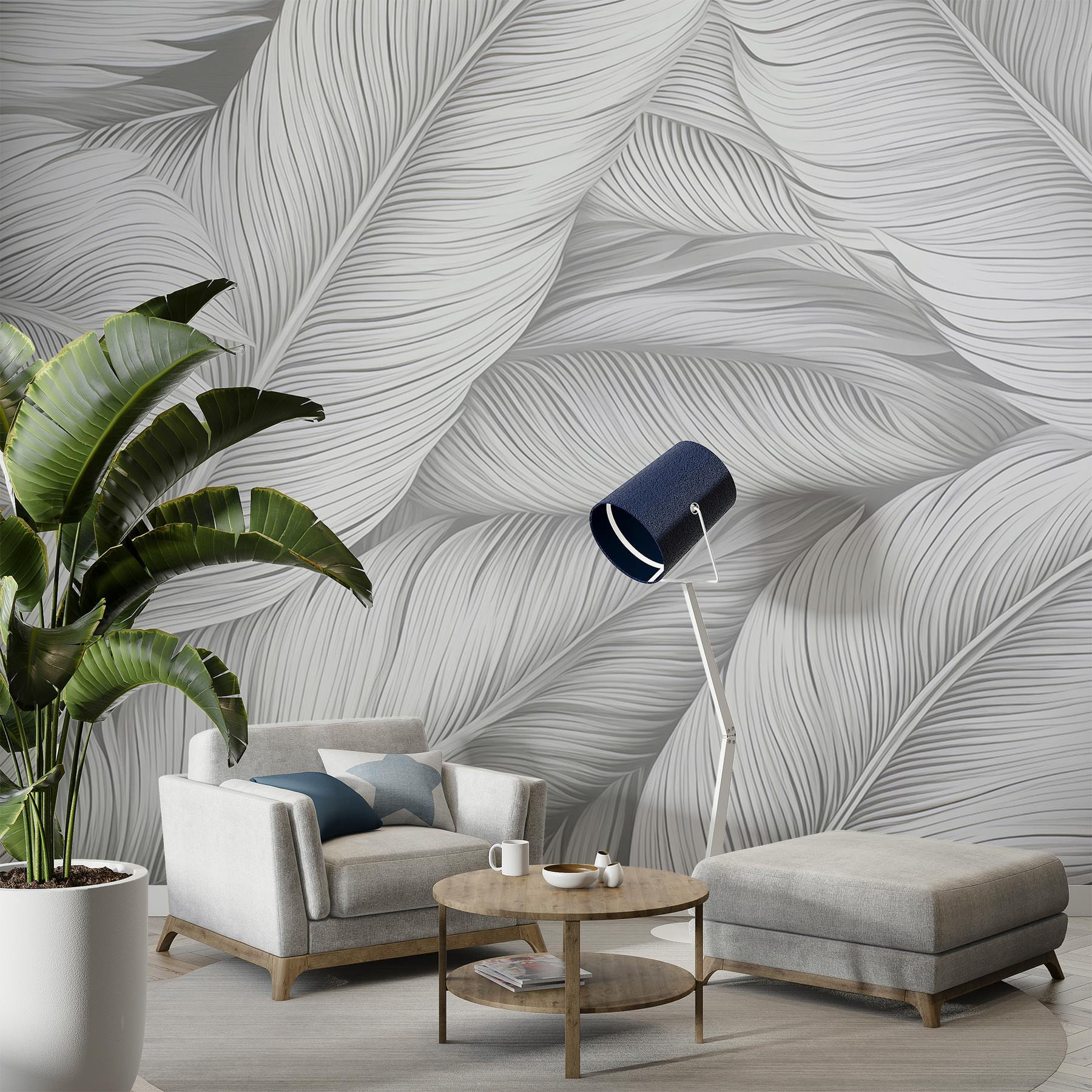 Stap een ruimte binnen vol rustgevende vibraties met deze muurschildering met zachte, vloeiende bladeren in zachte monochrome tinten. Het is alsof je een serene tuin binnenshuis haalt, zonder de vervelende insecten en de gieter. Stel je eens voor dat je een gezellige bijeenkomst hebt, waar iedereen de elegante muur bewondert en het gevoel heeft dat ze in een chique, rustige schuilplaats zijn beland. De subtiele details bieden een vleugje kunstzinnigheid dat uitnodigt tot introspectie, perfect om thee te drinken of te dagdromen. Of het nu in een woonkamer is of in een rustig leeshoekje, deze muurschildering verandert de muren in een frisse wind. Je kamer verdient een beetje gratie van de natuur, vind je niet?