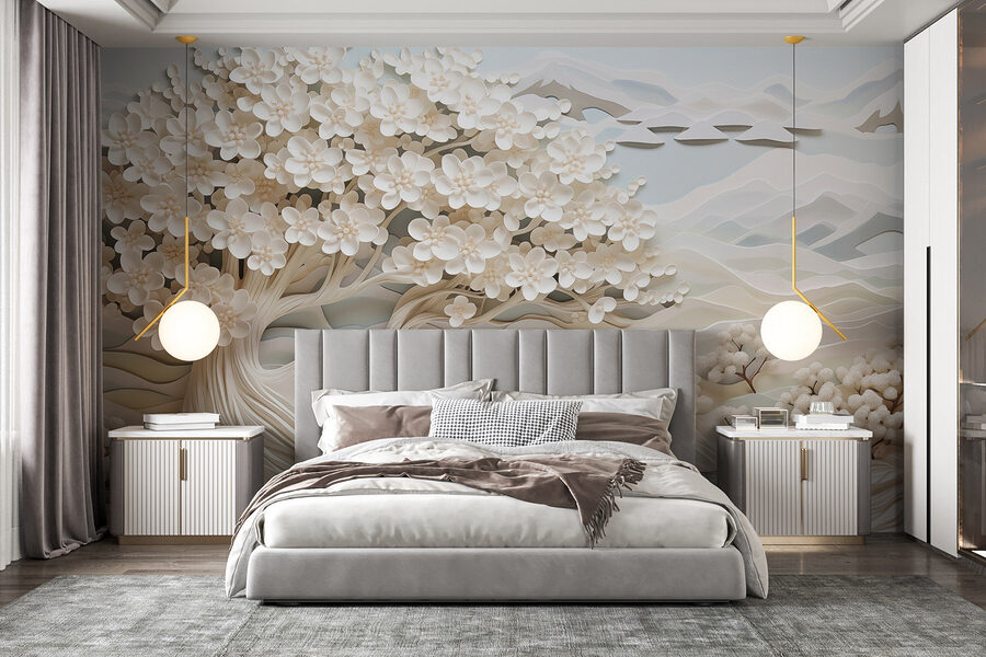 Verander elke ruimte in een serene toevluchtsoord met de muurschildering “Witte boom met witte bloemen en een rivier”. Stel je voor dat je een wereld binnenstapt waar fluisterende bloemblaadjes en zacht stromend water binnen handbereik zijn. Deze muurschildering, met zijn zachte tinten en gedetailleerde details, nodigt uit tot dagdromen en rustige momenten. Het is alsof je een stukje natuur in huis haalt – perfect voor iedereen die houdt van een vleugje rust. Of het nu in een gezellig leeshoekje is of in een levendige woonkamer, deze muurschildering is gegarandeerd een gespreksonderwerp en een dagelijkse herinnering aan schoonheid. Bovendien, wie zou niet willen doen alsof hij aan een rustige rivier woont?