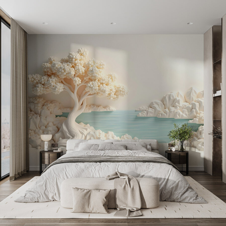 Transformeer je ruimte met de prachtige “Fotobehang White Tree and Water”. Deze prachtige muurschildering brengt een serene sfeer in je huis, met een prachtig bewerkte boom die bijna geheimen van de natuur lijkt te fluisteren. Stel je voor dat je ‘s ochtends aan je koffie nipt terwijl je naar het rustige water staart – het is net een mini-ontsnapping aan de drukte.