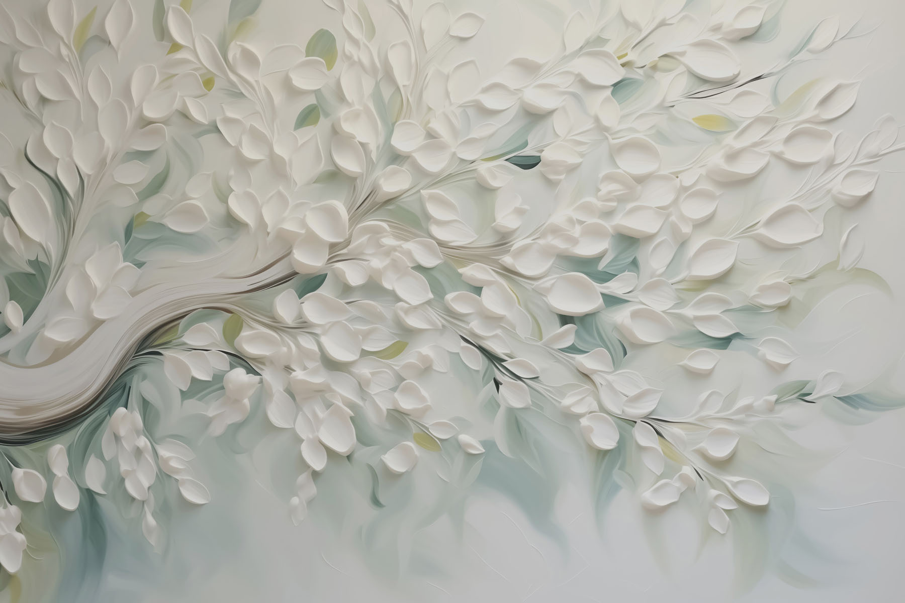 Transformeer uw ruimte met deze prachtige muurschildering met een serene witte boom versierd met delicate bladeren. Het is als een verademing voor uw muren! Stel u voor: u loopt uw woonkamer binnen en bam – de rustgevende vibes van de natuur omhullen u, waardoor elke kop koffie aanvoelt als een mini-uitje. De zachte kleuren en mooie texturen geven een gevoel van rust, waardoor je misschien even stilstaat om alles in je op te nemen. Deze muurschildering is perfect voor gezellige hoekjes of als dramatisch statement en brengt een vleugje elegantie en de schoonheid van de natuur in je huis. Wie had gedacht dat een muur je zo’n goed gevoel kon geven?