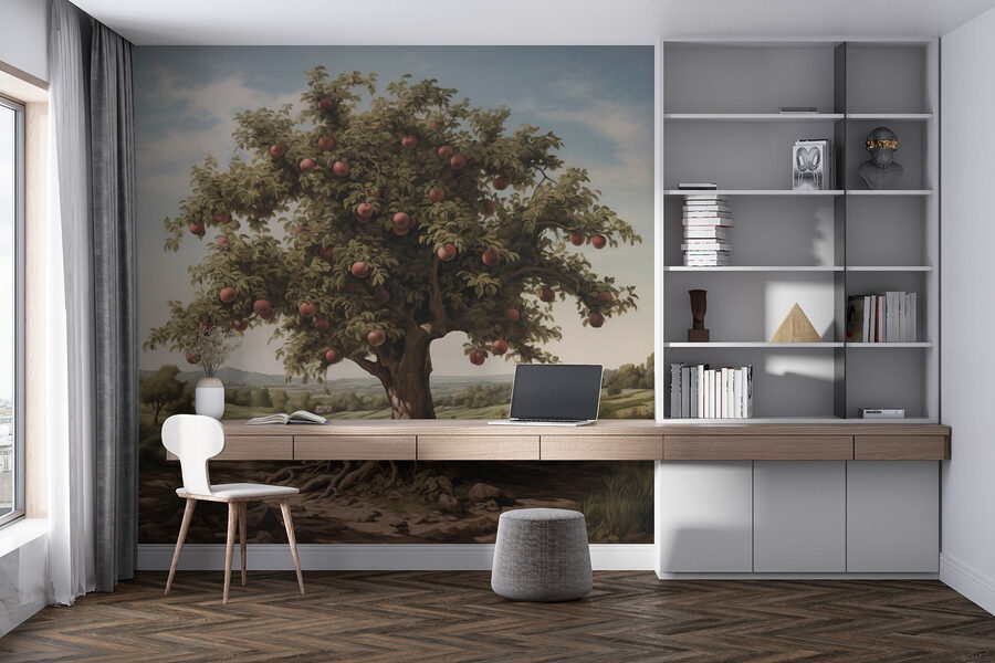 Verander uw ruimte in een serene toevluchtsoord met de charmante muurschildering “Tree with Apples”. Stel u het zachte ruisen van bladeren en de zoete, frisse geur van de herfst voor, terwijl deze schoonheid de natuur naar binnen haalt. Die dikke appels lijken u bijna uit te nodigen voor een picknick onder hun takken. Perfect voor woonkamers, gezellige hoekjes of zelfs een eigenzinnige keuken, het geeft u het gevoel dat u op een zonnige dag van cider nipt. Bovendien, wie houdt er nou niet van een gespreksonderwerp dat bijna smeekt om een picknick? Een vleugje eigenzinnigheid en een heleboel natuur – een heerlijke aanvulling op elk interieur!