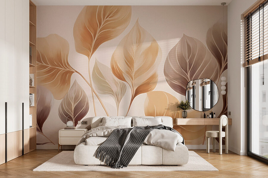 Een ruimte omtoveren kan zo eenvoudig zijn als het toevoegen van een vleugje natuur, en dat is precies wat deze muurschildering met haar delicate bladeren in rustgevende tinten doet. Stel je voor dat je een kamer binnenloopt en je meteen een beetje meer ontspannen voelt, alsof je een gezellig bosgazon binnenstapt zonder modder en ongedierte. Die zachte, aardse tinten fluisteren sereniteit en nodigen iedereen uit om diep adem te halen. Perfect voor een woonkamer of een rustig leeshoekje, het creëert een zachte achtergrond die kunst en meubels laat opvallen zonder de show te stelen. Het is alsof je een rustige vriend aan de muur hebt hangen – altijd aanwezig, nooit overweldigend. En wie wil er nu niet dat zijn huis een beetje meer voelt als een ontsnapping?