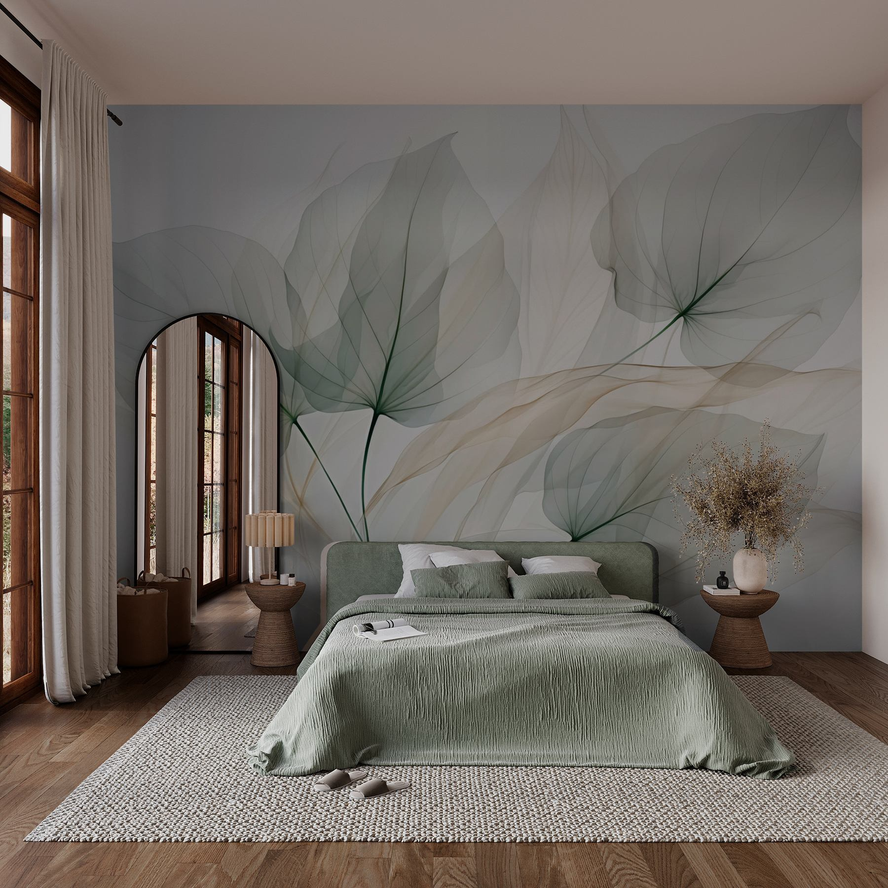 Transform any space with the “Transparent Leaves on a White Background” mural—it’s like bringing a breath of fresh air indoors! Imagine waking up to the soft, delicate outlines of leaves floating on your wall—seriously, who wouldn’t feel zen? These gorgeous, sheer designs subtly blend elegance and nature, making every corner feel alive and relaxed. Perfect for that cozy reading nook or the dining area—just picture sharing a cup of coffee while surrounded by this calming beauty. It’s almost like nature’s whispering right to you, saying, “Breathe deep and enjoy life.” Plus, it’s a foolproof way to liven up a drab wall without going full jungle. What’s not to love?